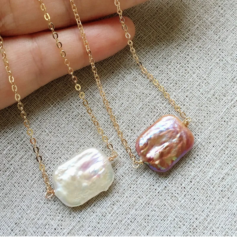 Rectangle Pearl : 14-17mm Purple and White Pearl Pendant Necklaces