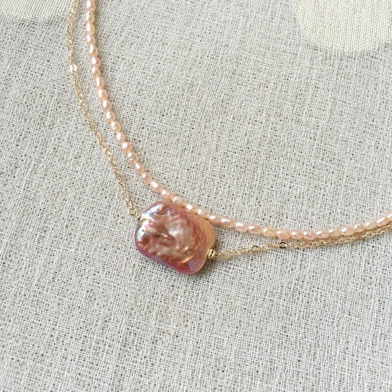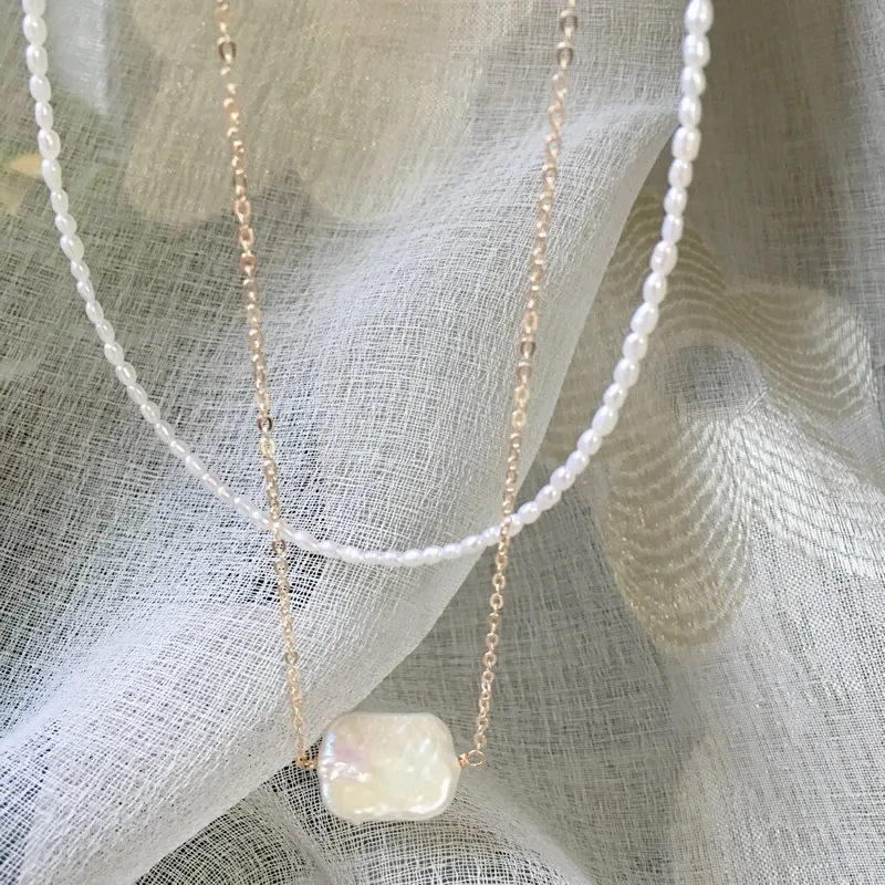 Pearl Shape : Rice Pearl Beaded Strand Necklace