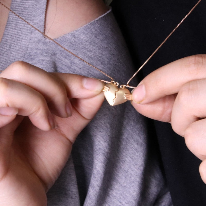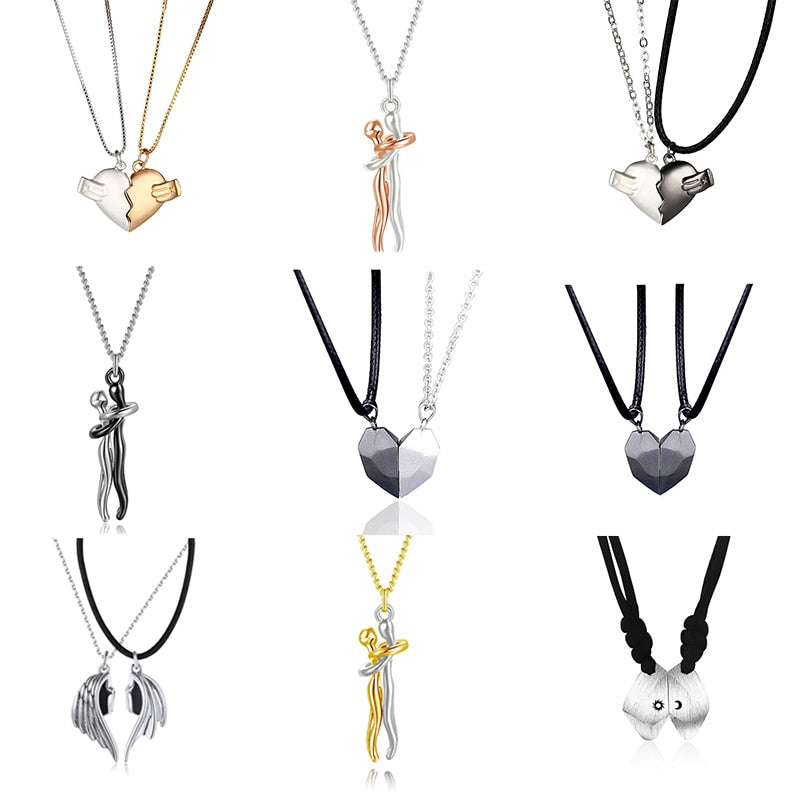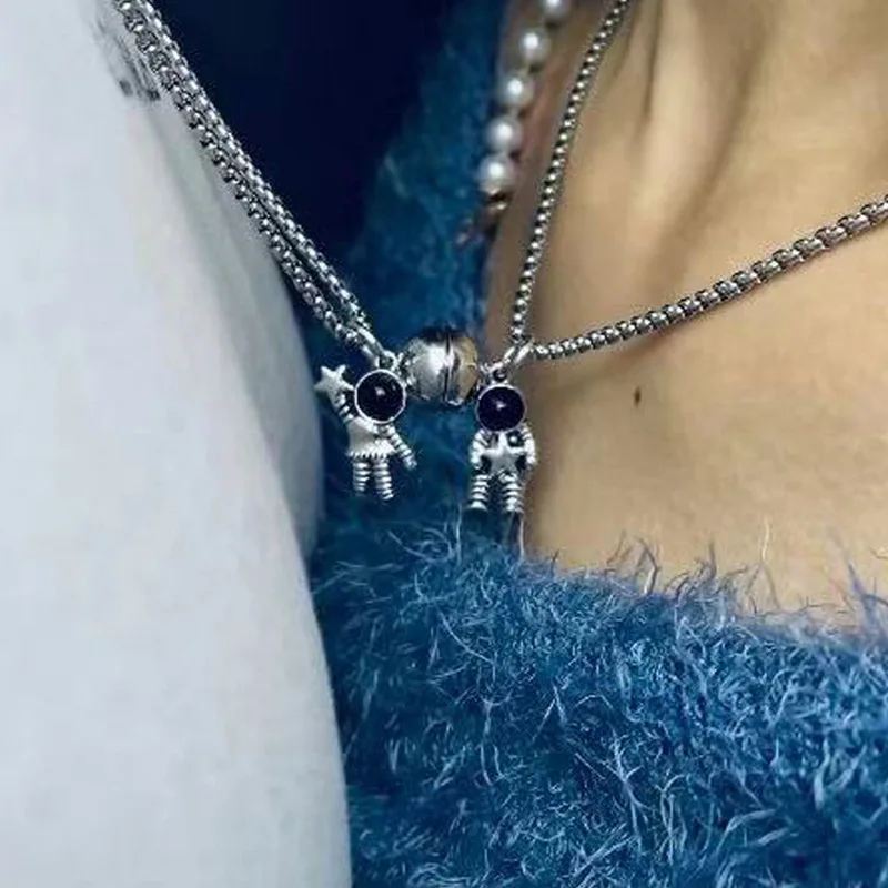 2 Pcs/Set Astronaut Heart Couple Magnetic Necklace For Women Paired Pendants Chain Choker Lover Valentine's Day Jewelry Gift