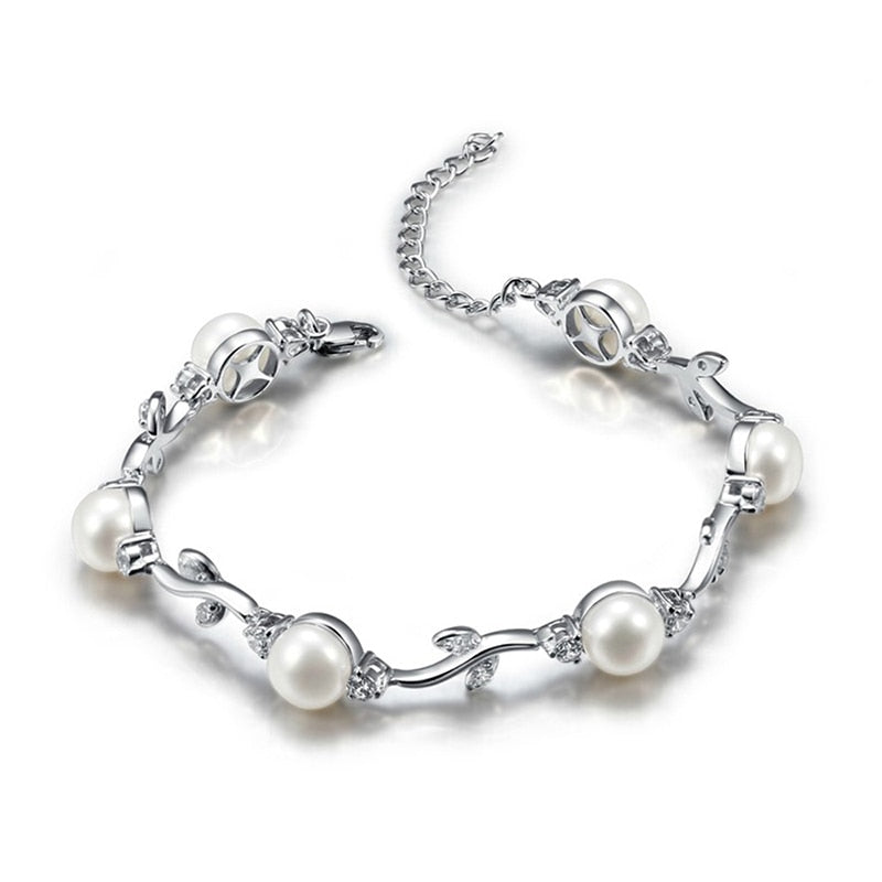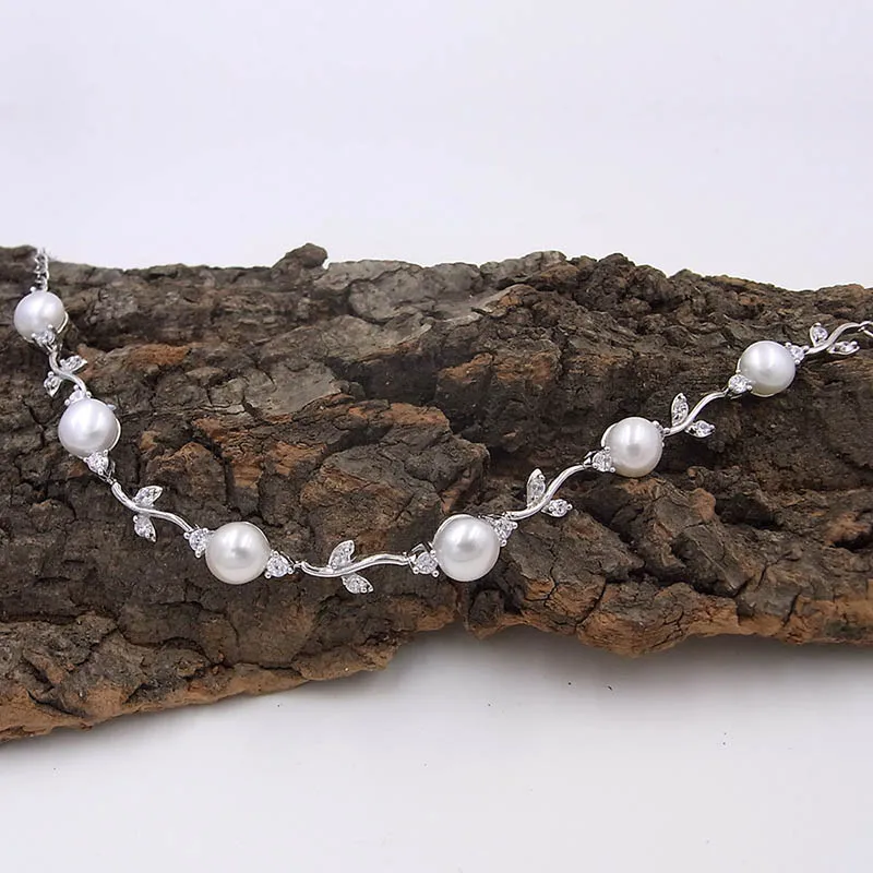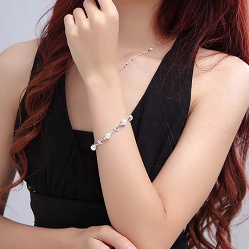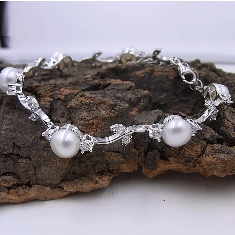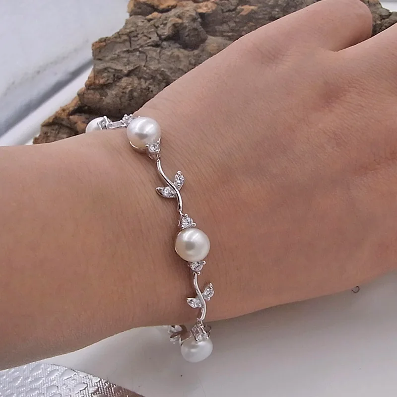 925 Sterling Silver bracelet Jewelry with 6pcs 7.5-8mm natural pearls High luster silver pearl bracelet