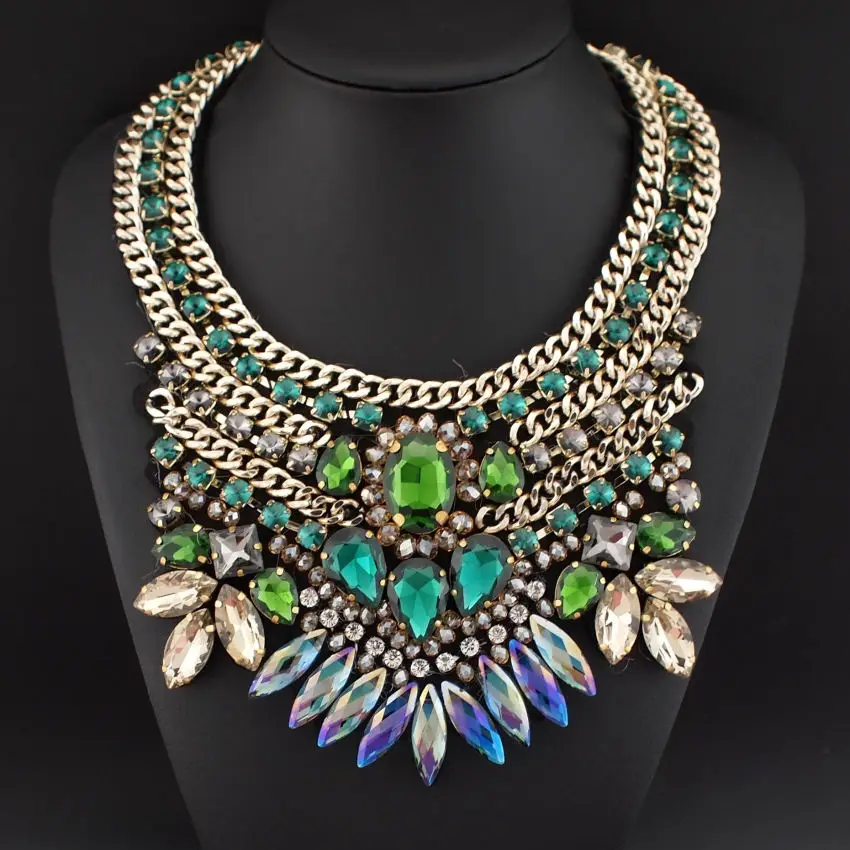 Brand Women Party Exaggerate Accessories Luxury Choker Multicolor Crystal Bead Collar Statement Necklaces Maxi Jewelry