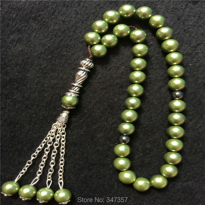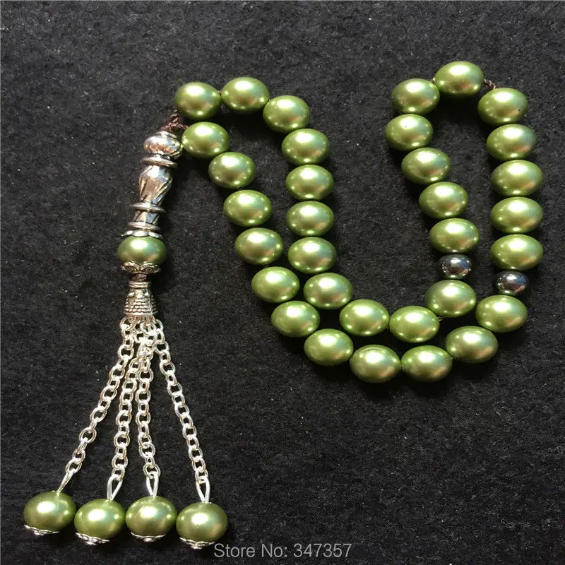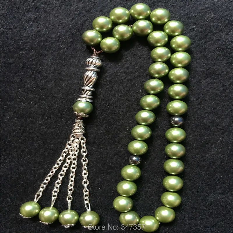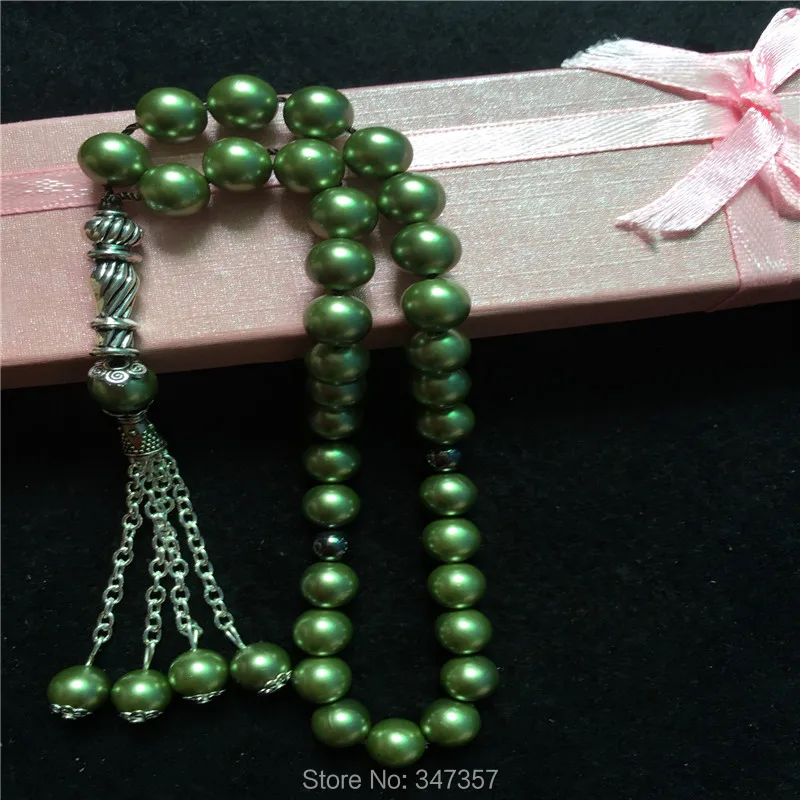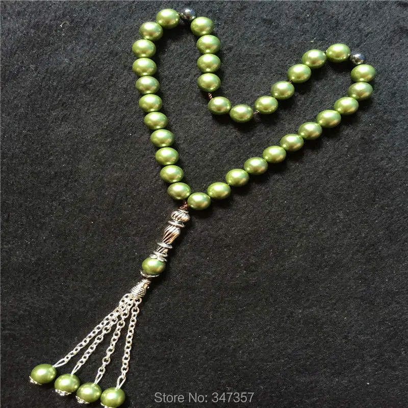 2020 New Arrival 8mm Blackish Green Color Pearl Shell Tridacna Stone Round Shape 33 Prayer Beads Islamic Muslim Tasbih Allah
