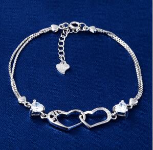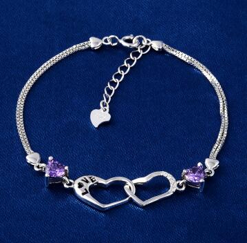 2020 100% 925 Sterling Silver Bracelet Women Silver Link Chain CZ Heart Charm Bracelet For Women Romantic Wedding Jewelry
