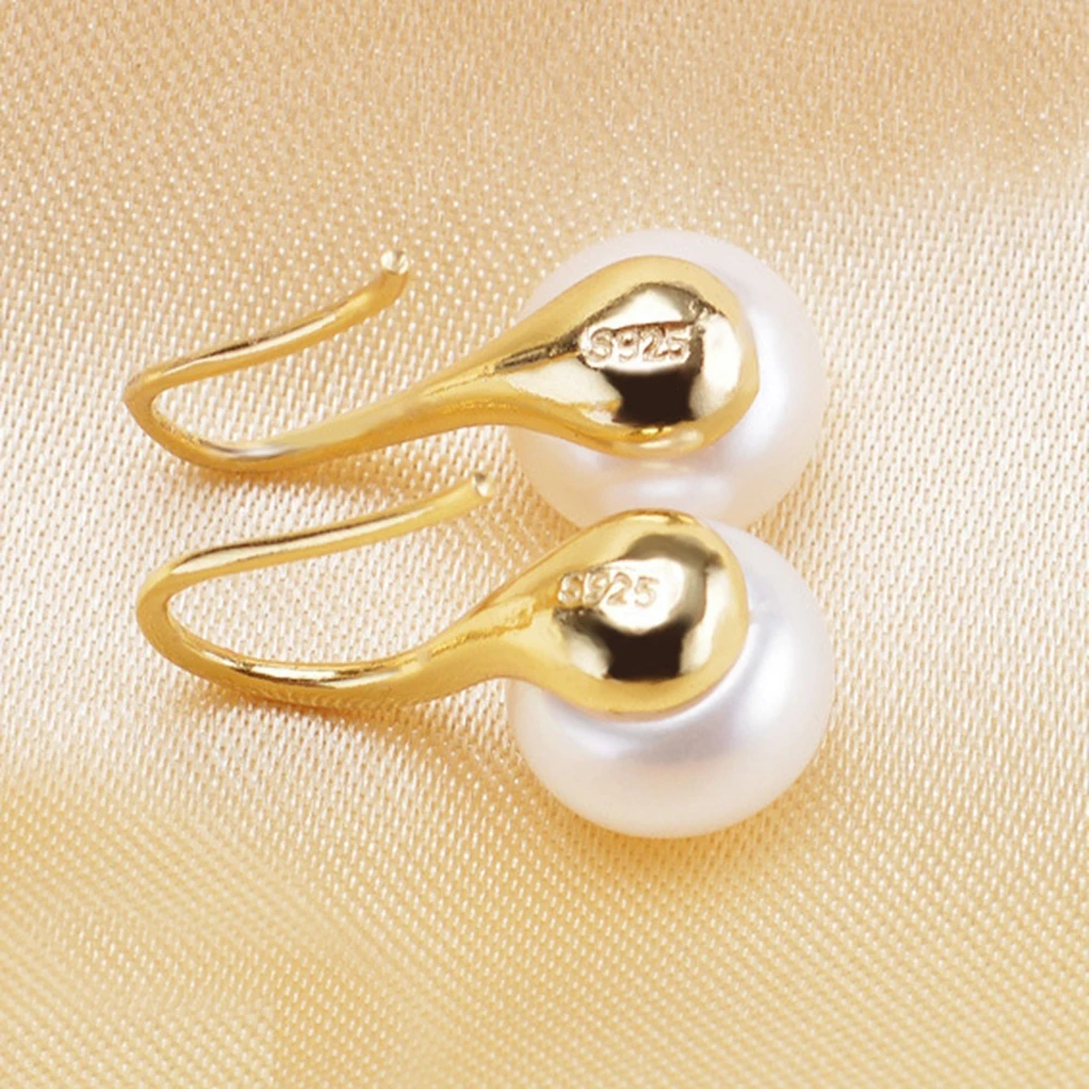 2020 Half Round Natural Pearl White/Yellow 925 Sterling Silver Dangle Earrings
