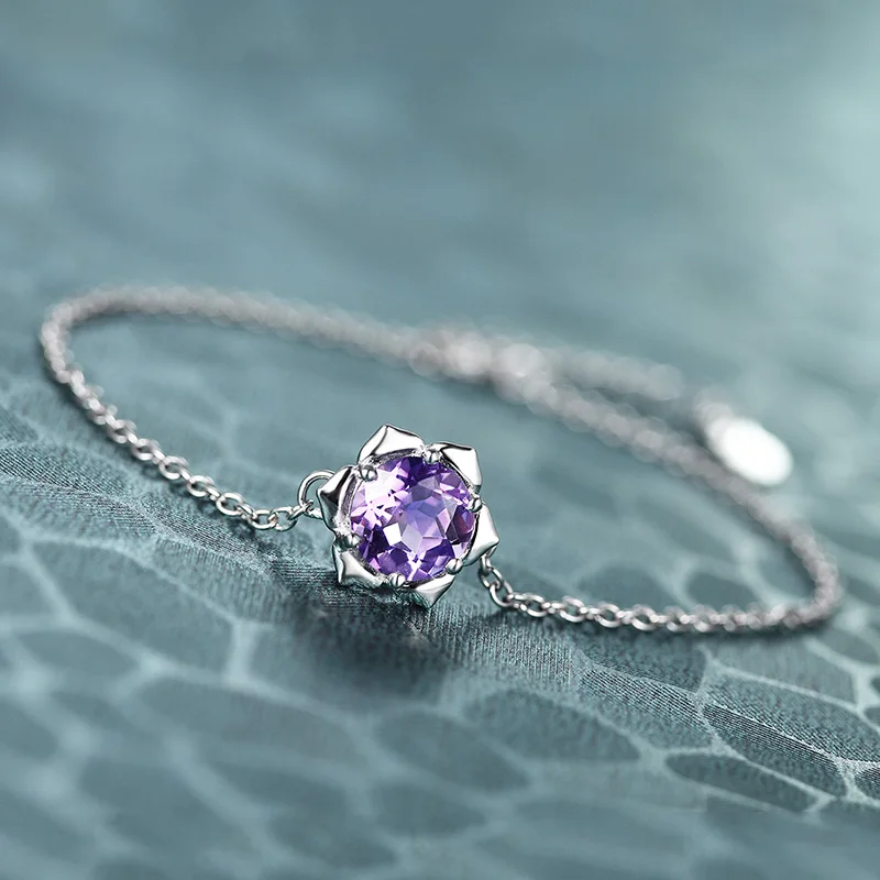 2020 New Arrival Amethyst Bracelets for Women 925 Sterling Silver Jewelry Flower Shape Romantic Women Gift bracelet femme