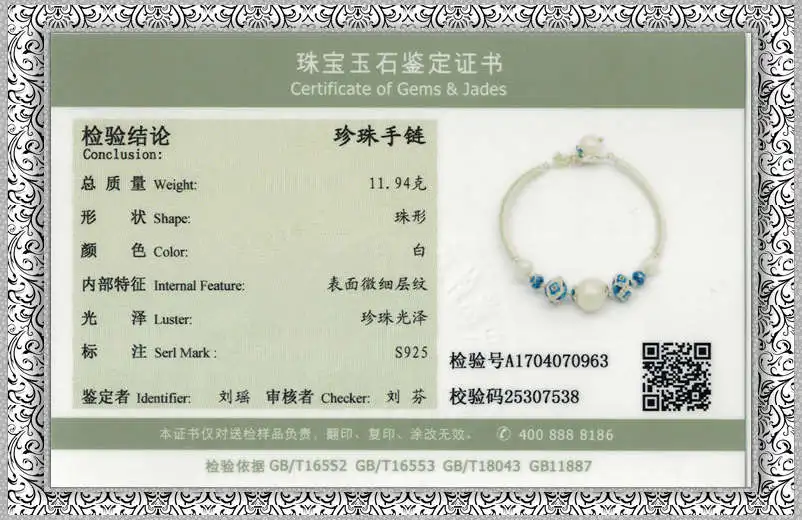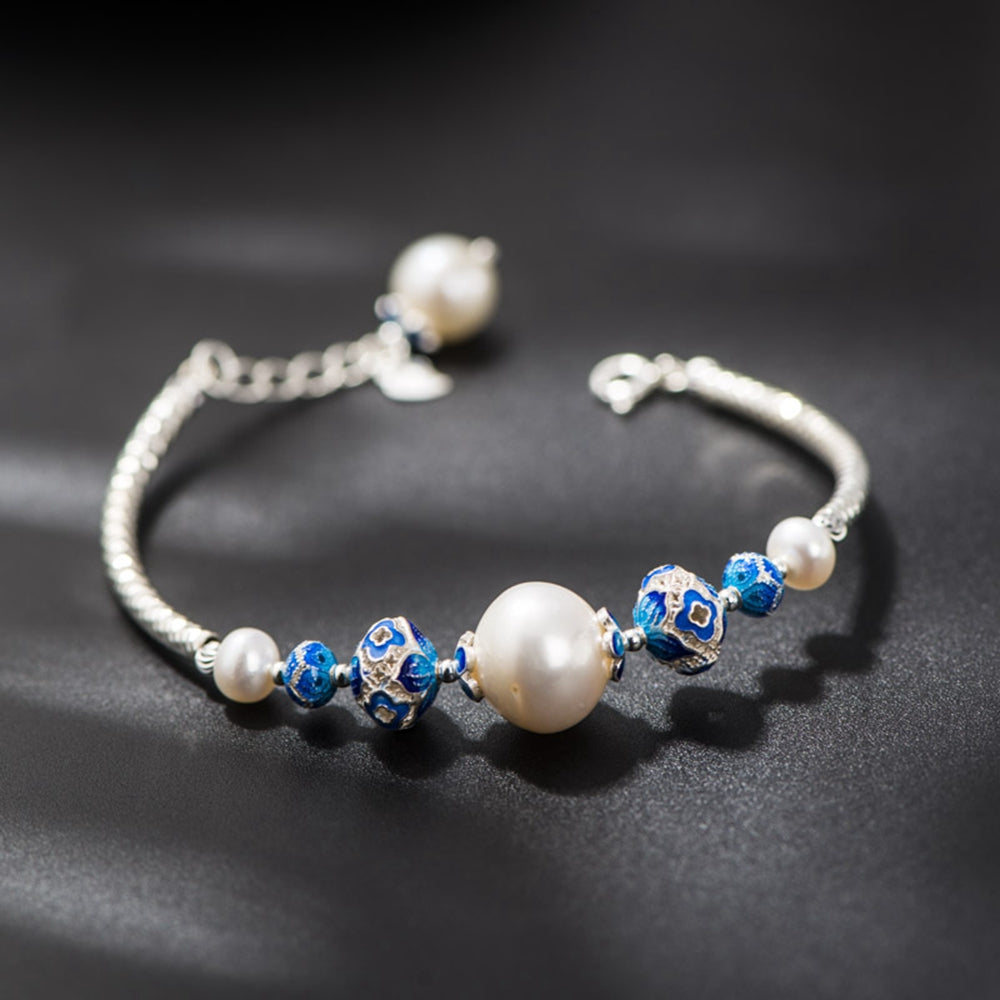 2020 New Blue Enamel 925 Sterling Silver Natural White Pearl Bracelet