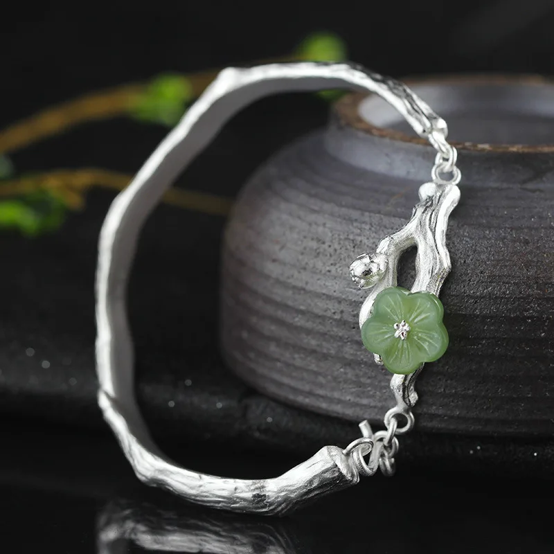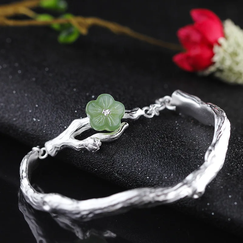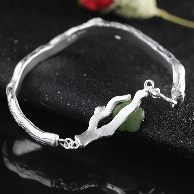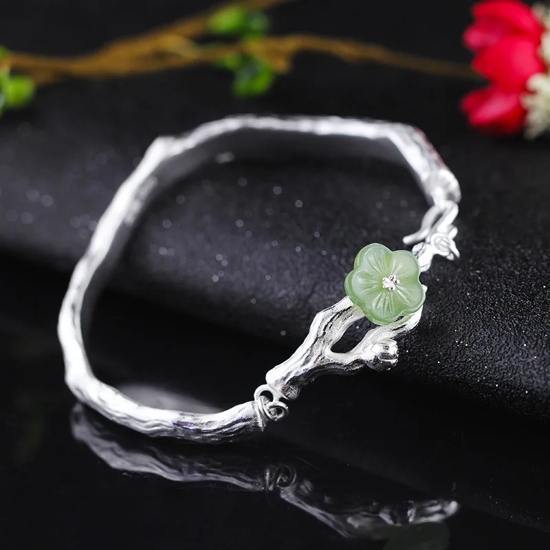 2020 Direct Selling Rushed Women Bangle Original Design Fine 999 Sterling Jewelry Handmade Fashion Lady Hetian Flower Bracelet