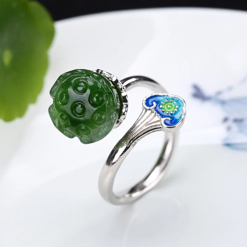 2020 Fashion Silver S925 Pure Silver Antique Mosaic And Tian Biyu Lotus Cloisonne Lady High-end Open Ring Wholesale