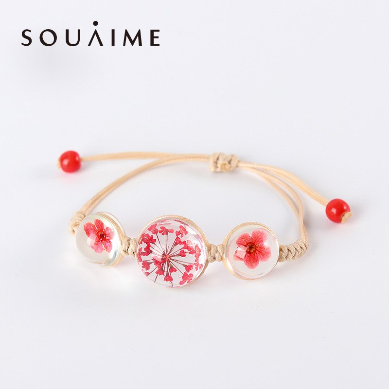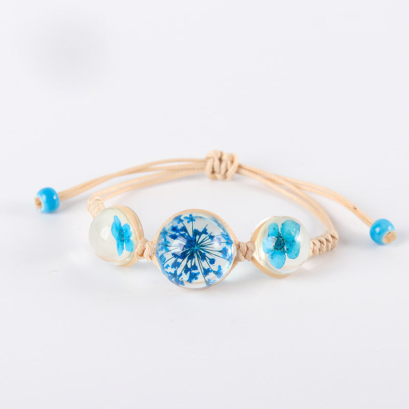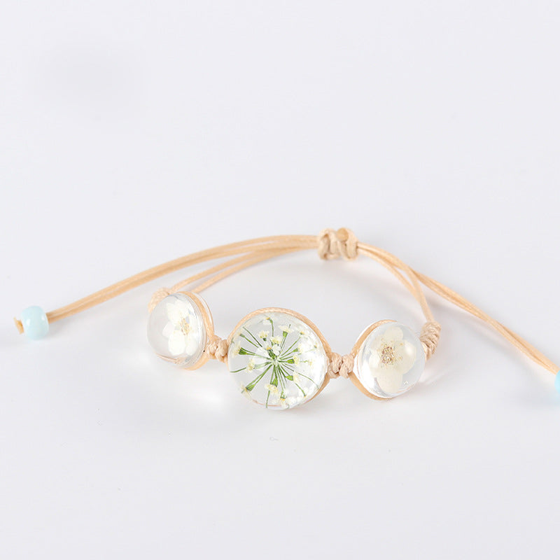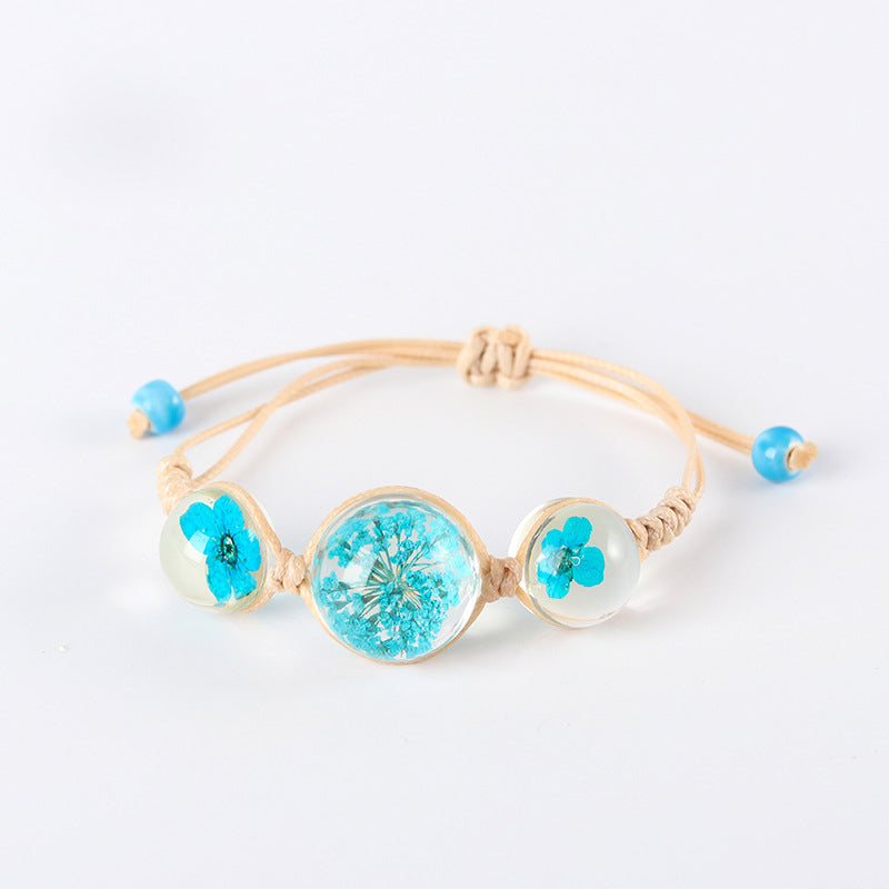 2020 Fashion Woven Adjustable Bracelet Lucky Grass Natural Dried Flower Bracelets Handmade Women Gift Jewelry Ball Glass