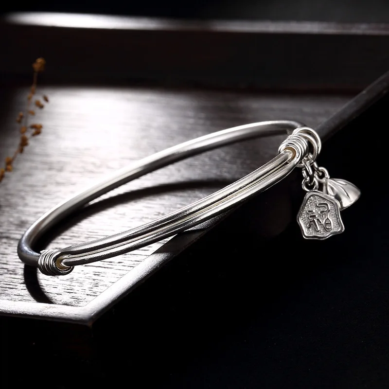 2020 Hot Sale S990 Fine Silver Smooth Push-pull Lotus Every2020 Listed On Silver Female Bangle Bracelets Wholesale