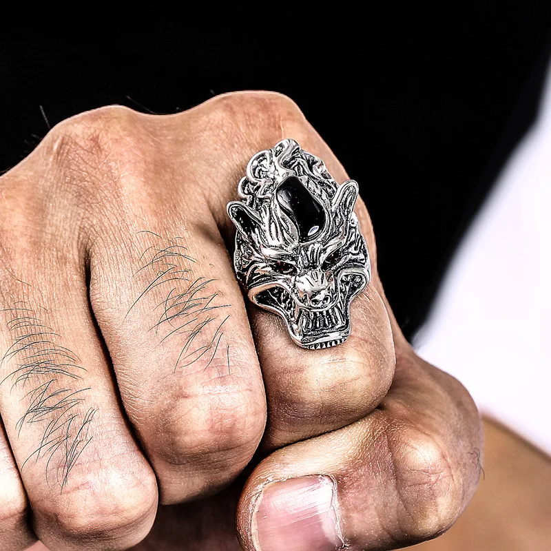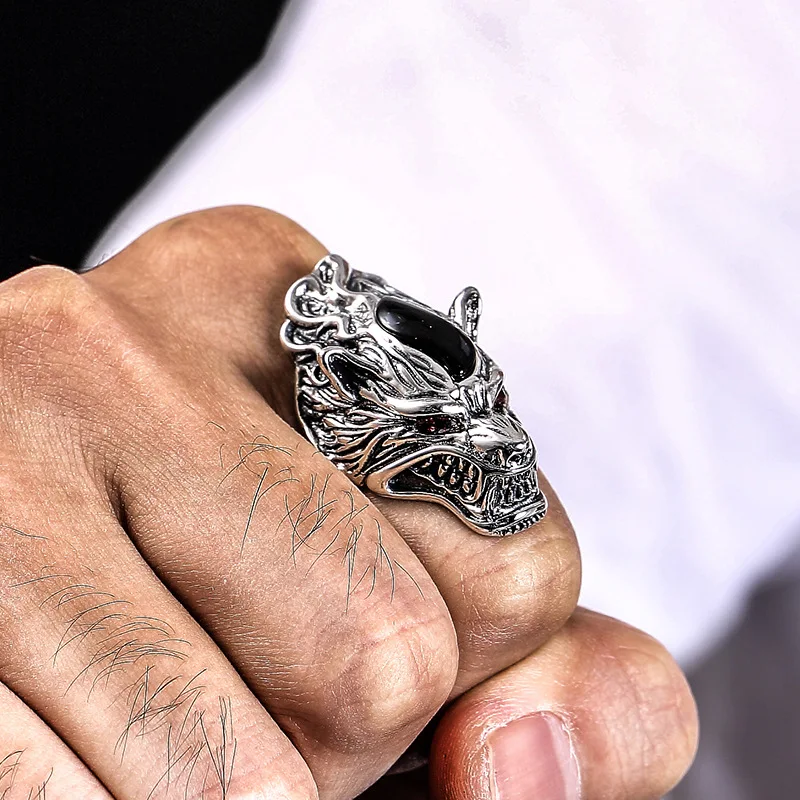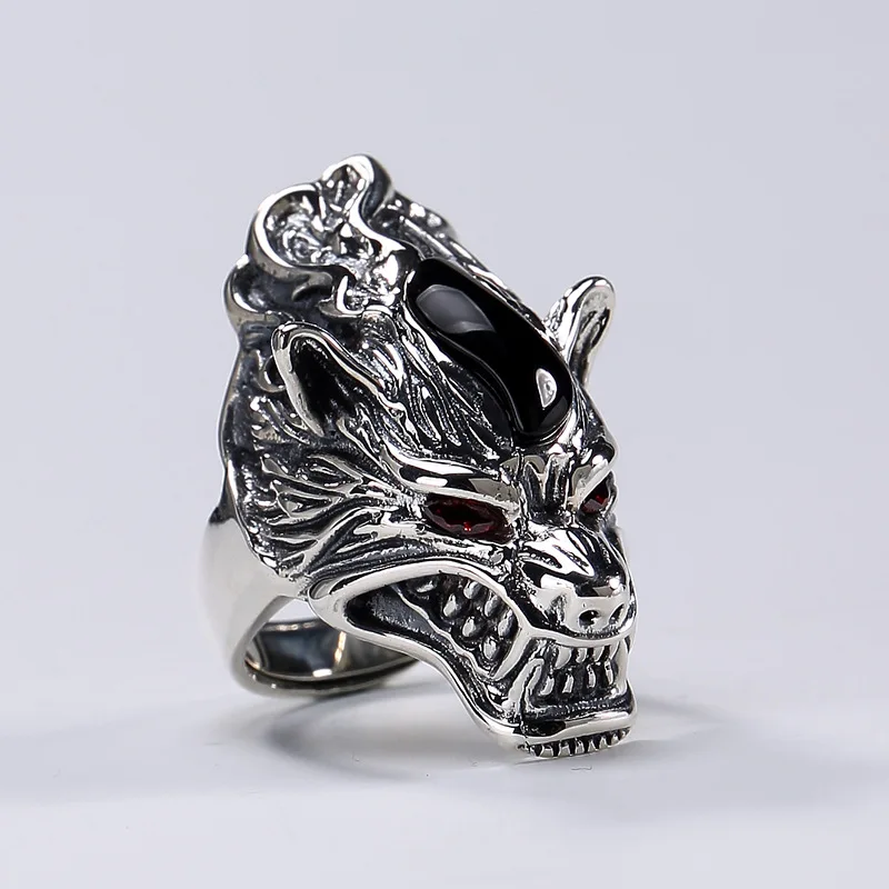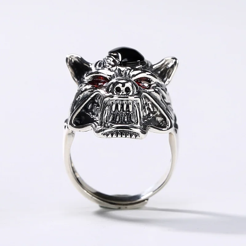 2020 Limited Anel Feminino S925 Sterling Agate Pu Wolf Head Retro Personality Domineering Male Opening Ring Thai Wholesale