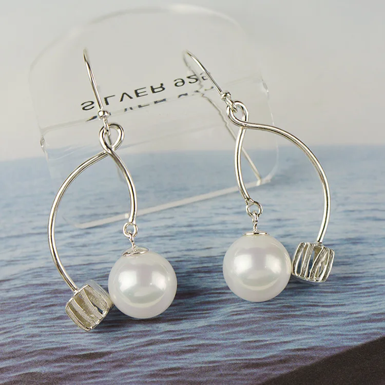 2020 Limited S925 Silken Female Beaded Bead Earrings Fashion Square Hollowed Arc Design Concave Mold Factory Direct Wholesale