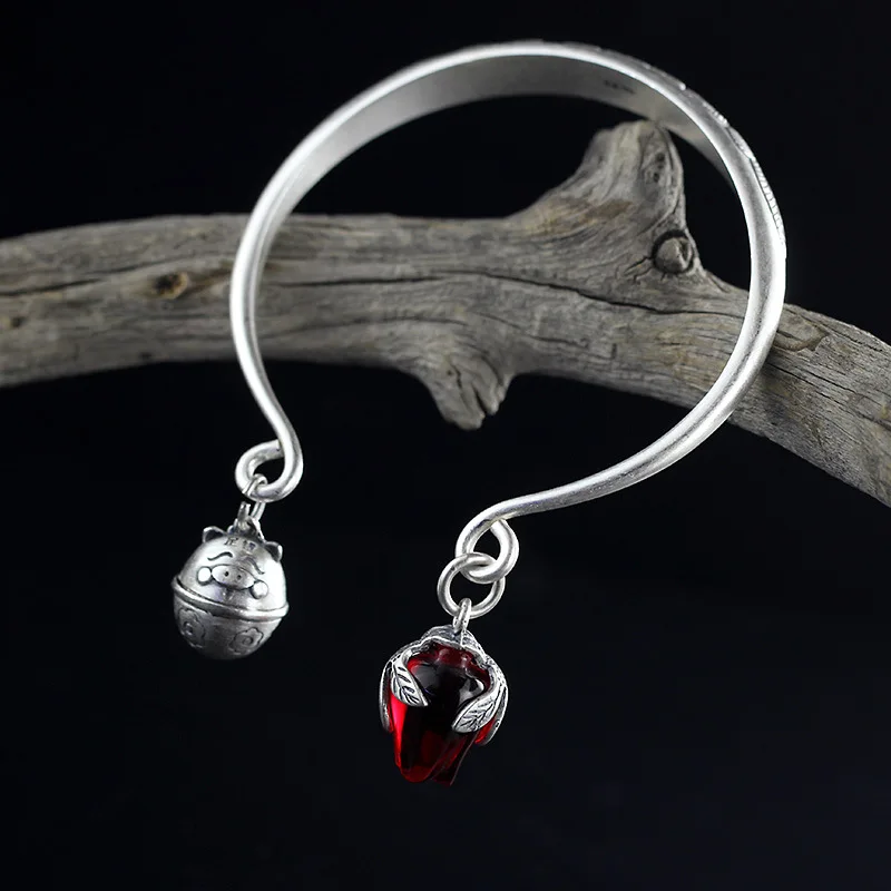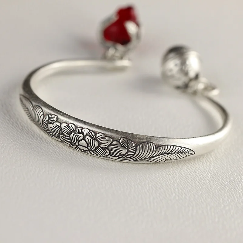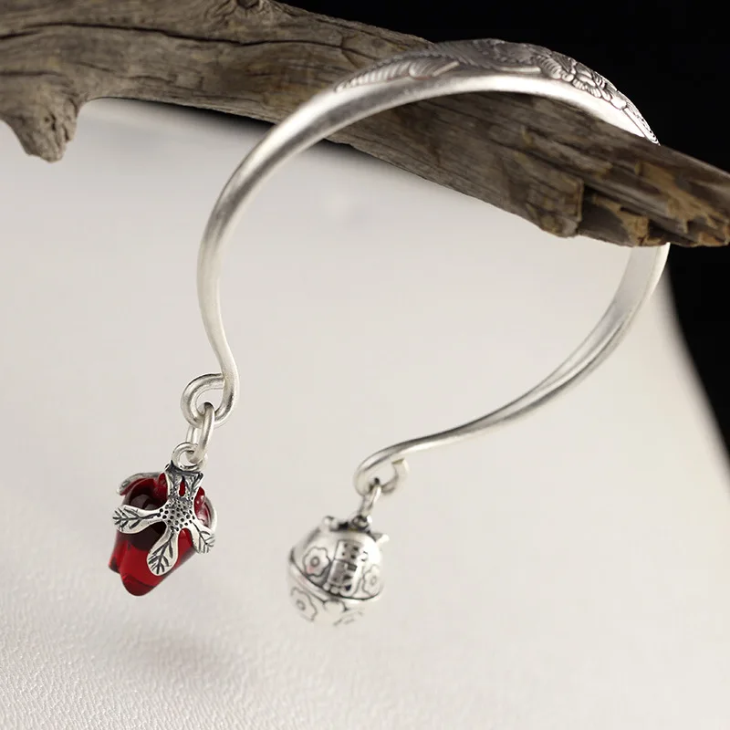 2020 New Armbanden Voor Vrouwen The Character Of 999 Matte Folk Style Handmade Lady Pomegranate Tulip Opening Bell Bracelet