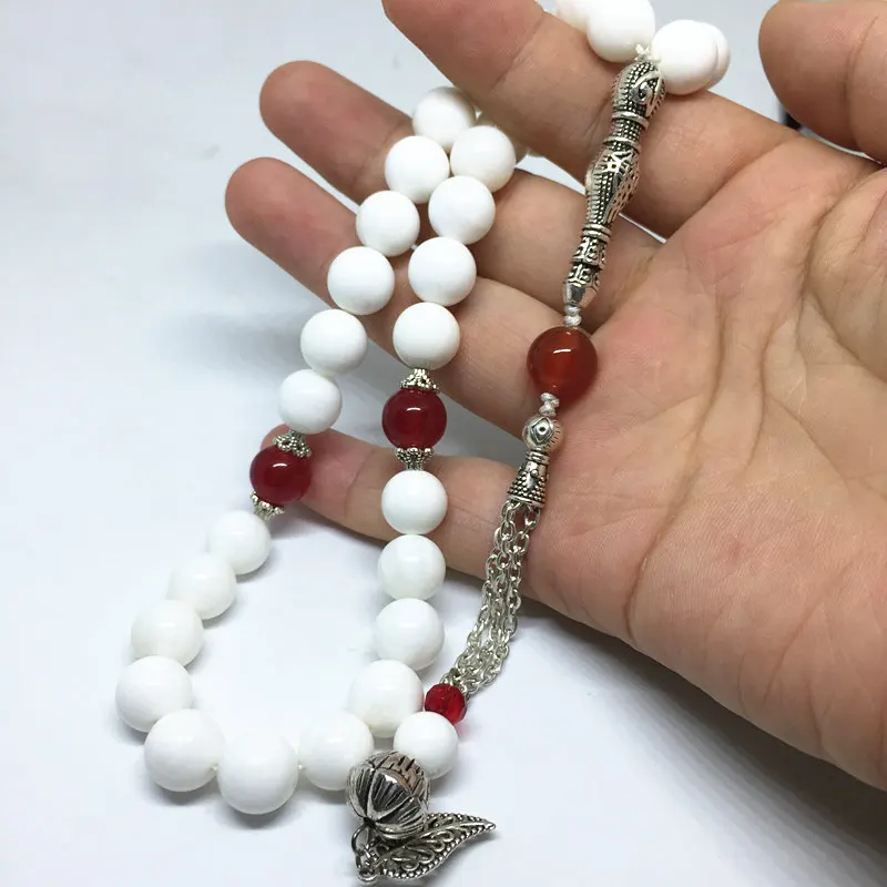 2020 New Designed 33 Natural Tridacna Stone 10mm Round Shape Gem Stone Kehribar Tesbih Islamic Muslim prayer beads Tasbih Allah