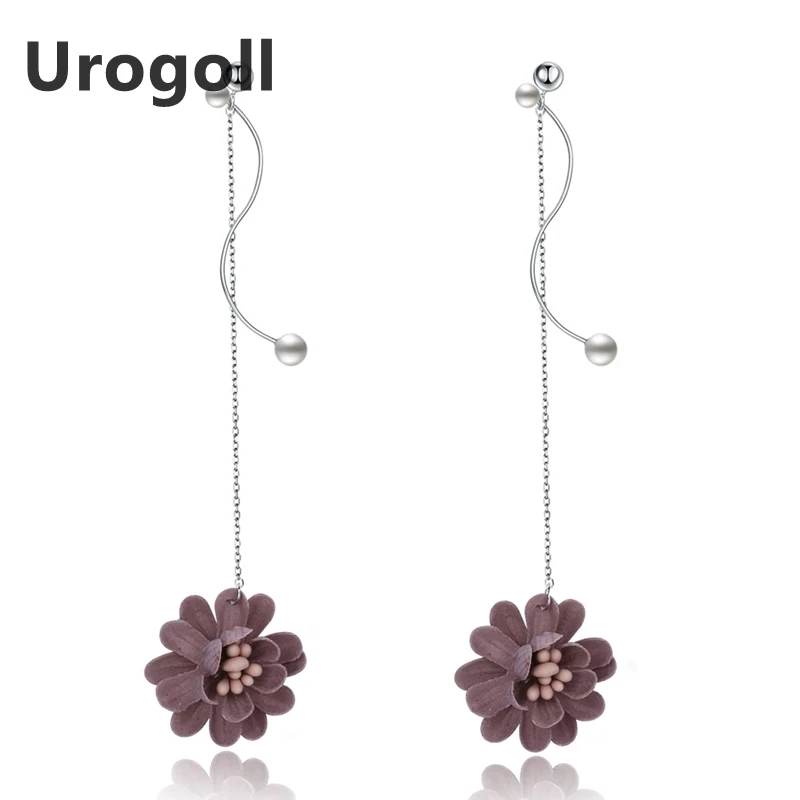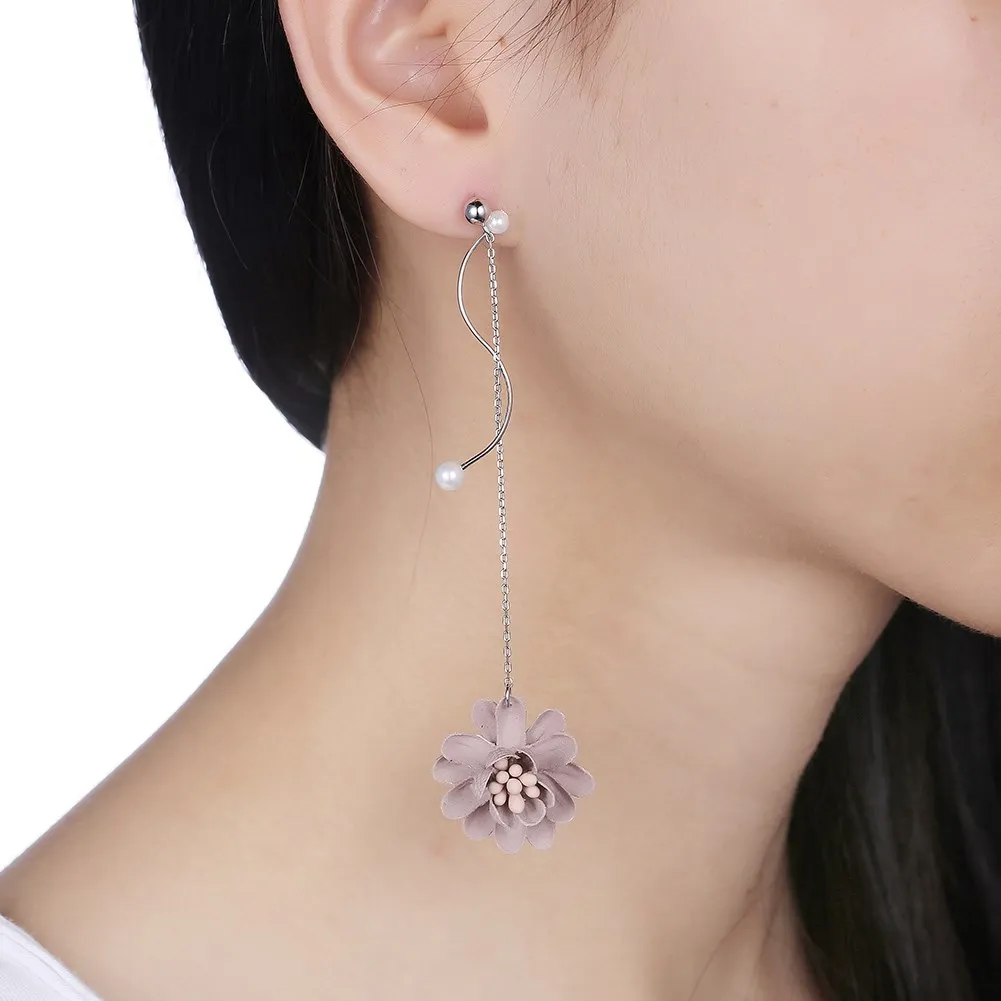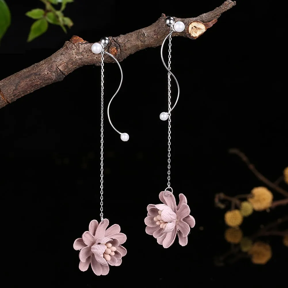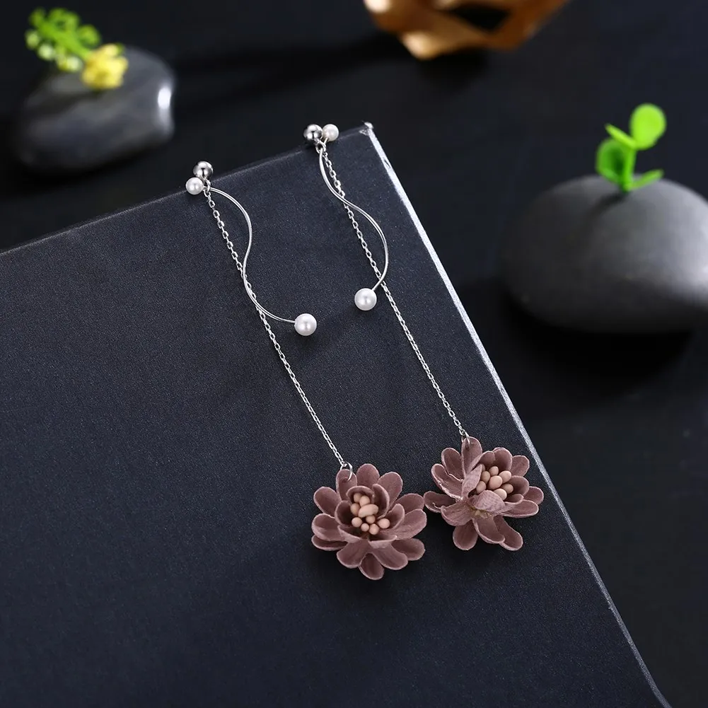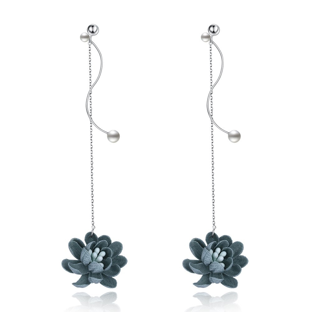 2020 New Fashion Earrings Silver 925 Jewelry Blue & Red Flower Pendant 925 Sterling Silver Drop Earrings Women Long Earrings