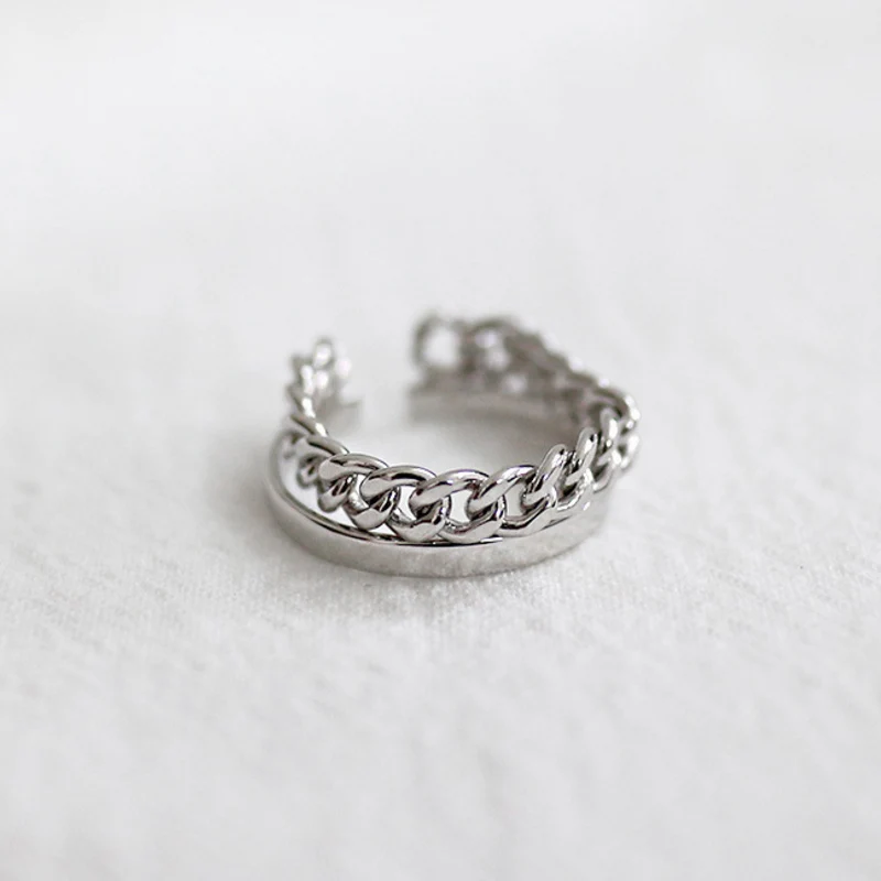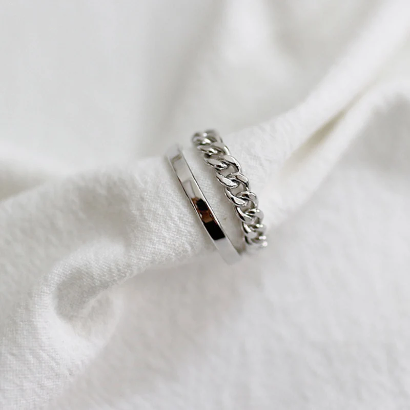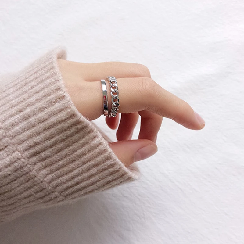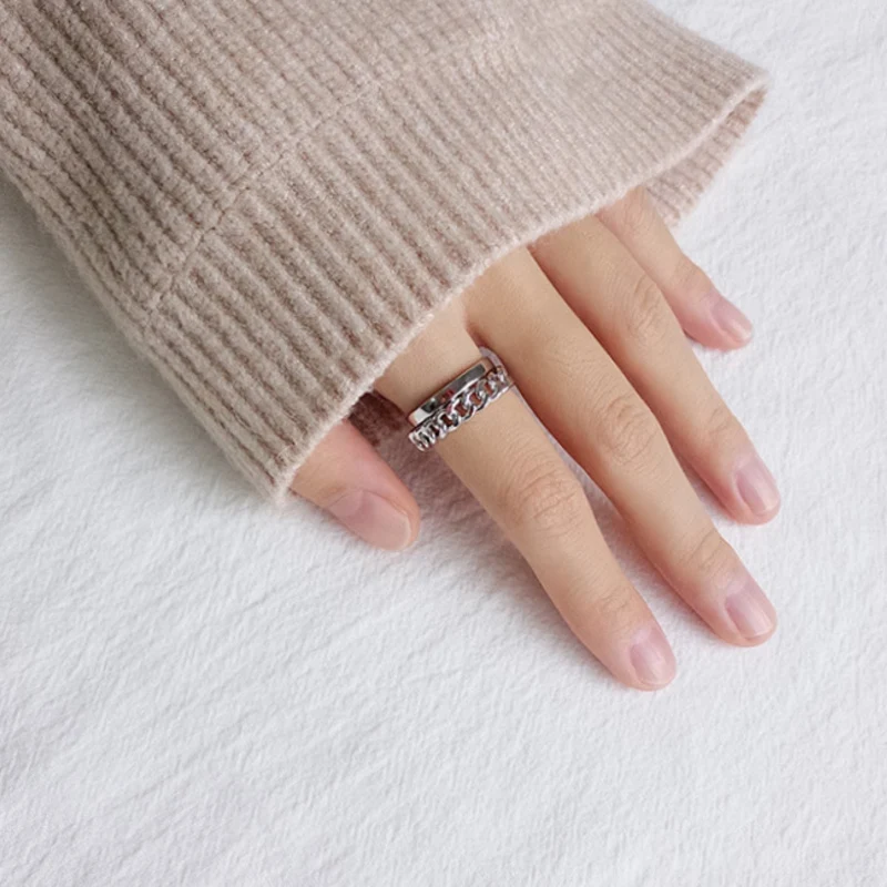2020 New Fashion Vintage Chain Double layer Ring 925 Sterling Simple Open Ring for Women Jewelry