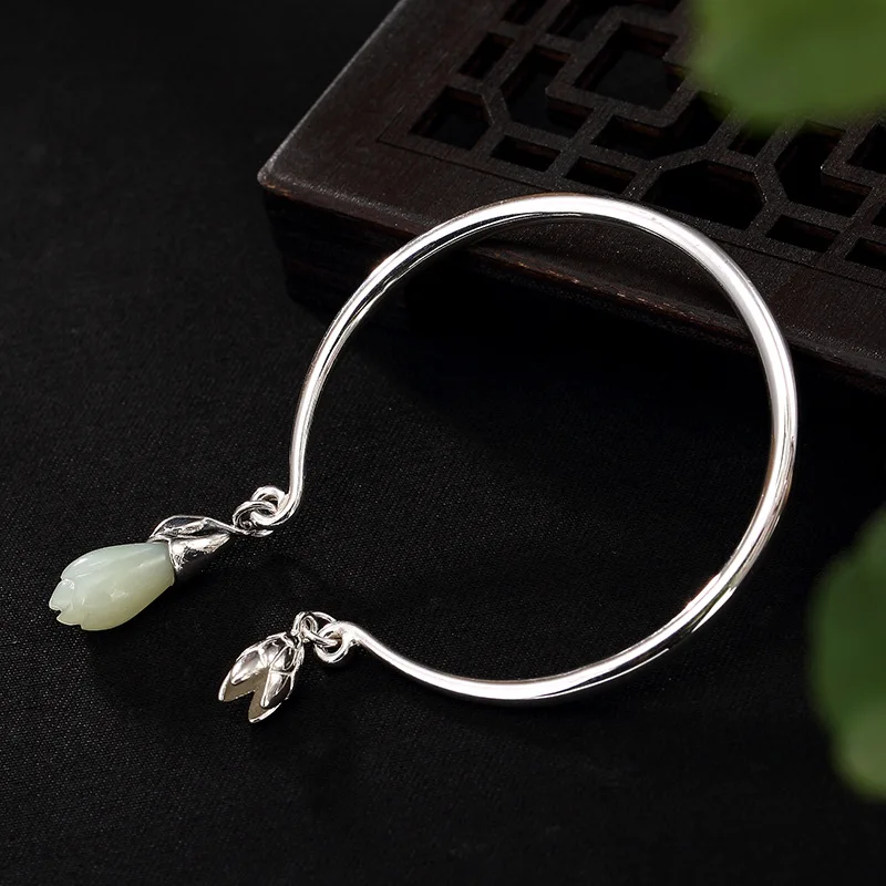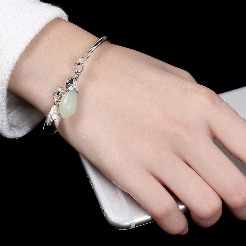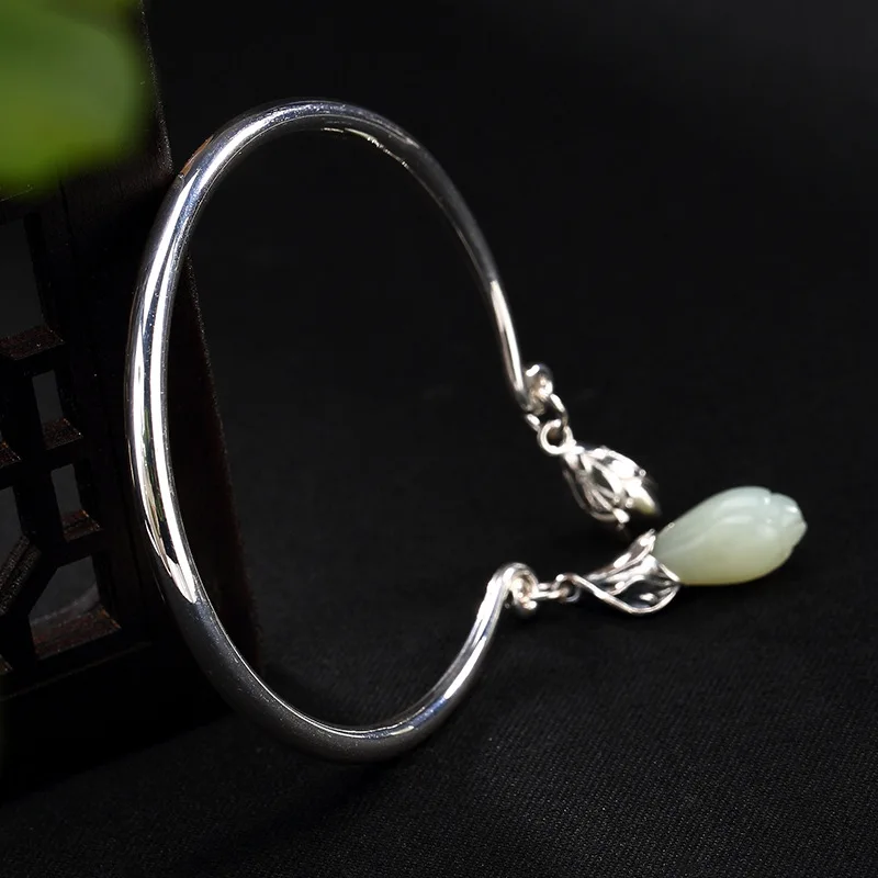 2020 Real Women Kehribar Women Bracelet New S990 Fine Ms Contracted Smooth Mosaic Of Natural Hetian Wholesale Sterling Bracelet