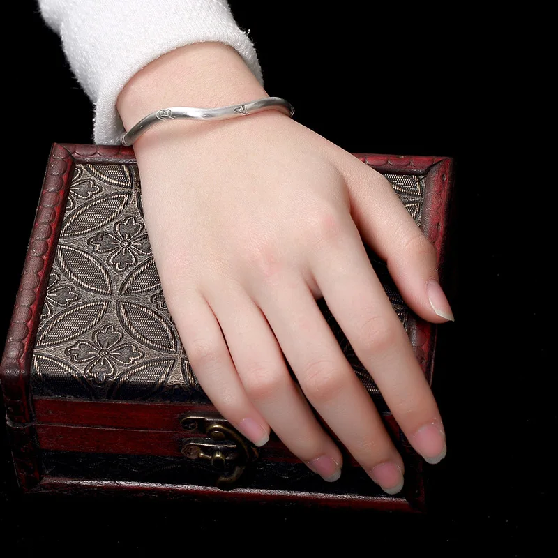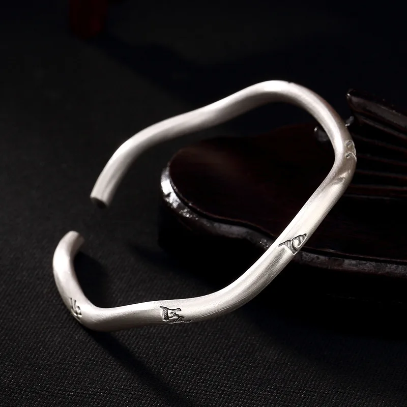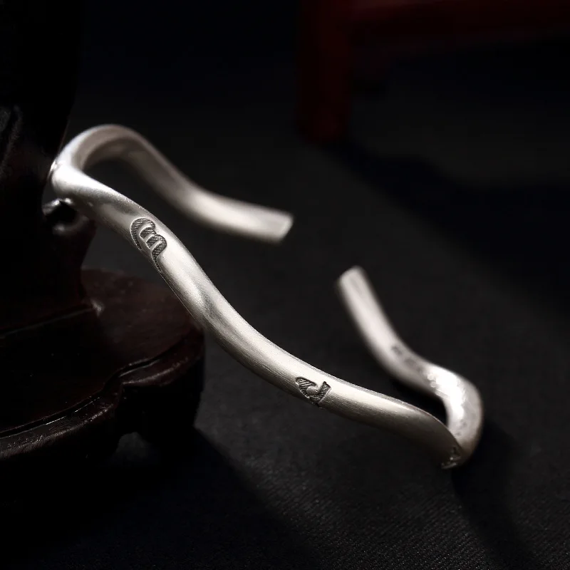 2020 Sale New Women S999 Six Solid Words, Pure Silver, Wave Shaped Sterling Antique Opening, Lady's Bracelet Wholesale Agent.