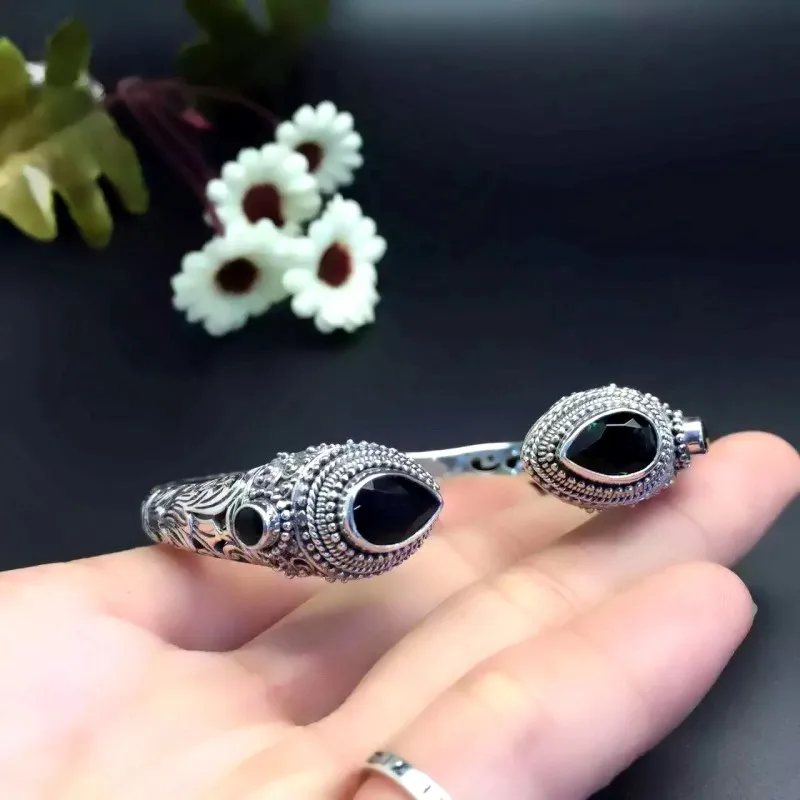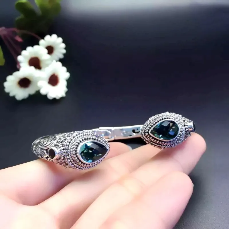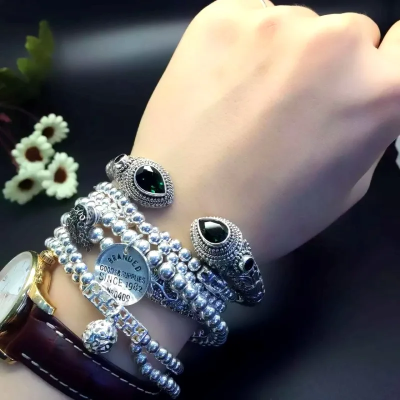 2020 Vintage Green Crystal Thai Silver Bracelet & Bangle For Women,Bali Ethnic Handmade Women Bangles Jewelry Pulseira Feminina