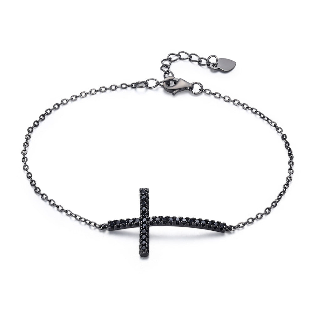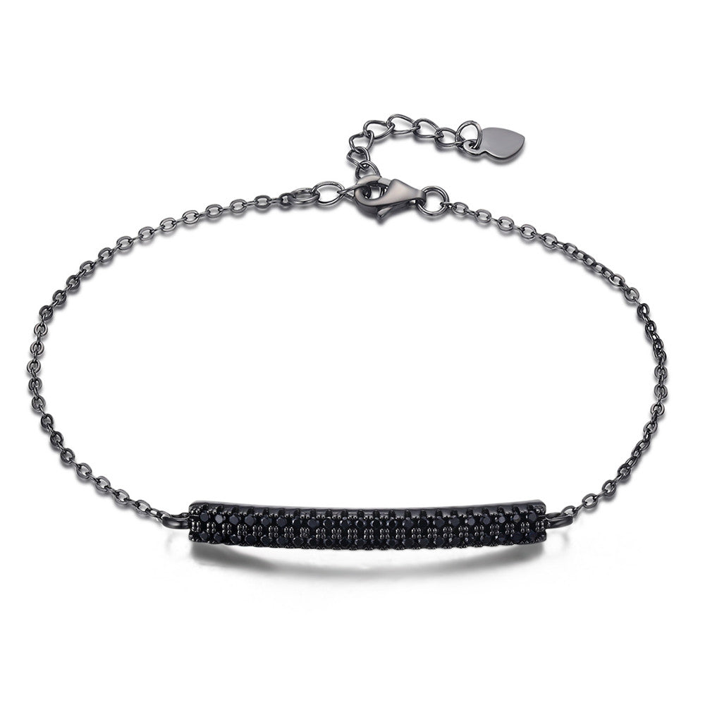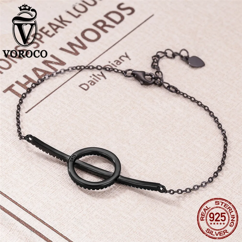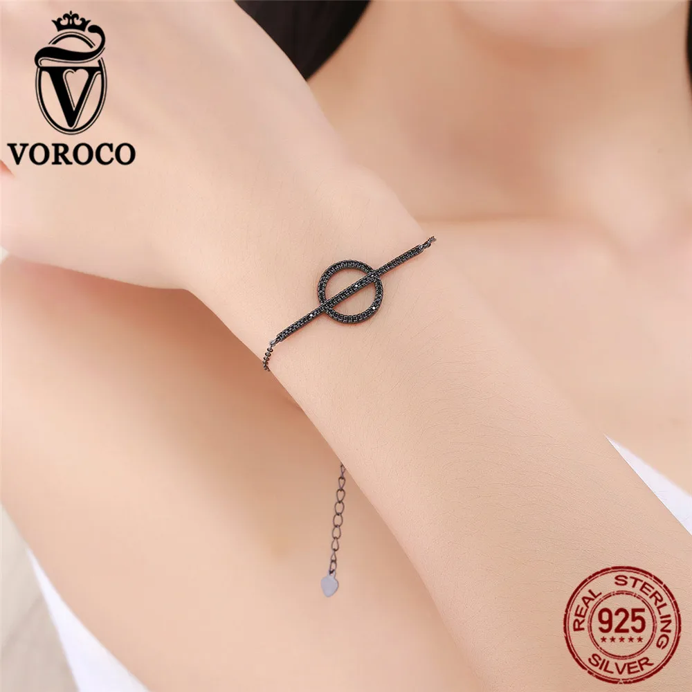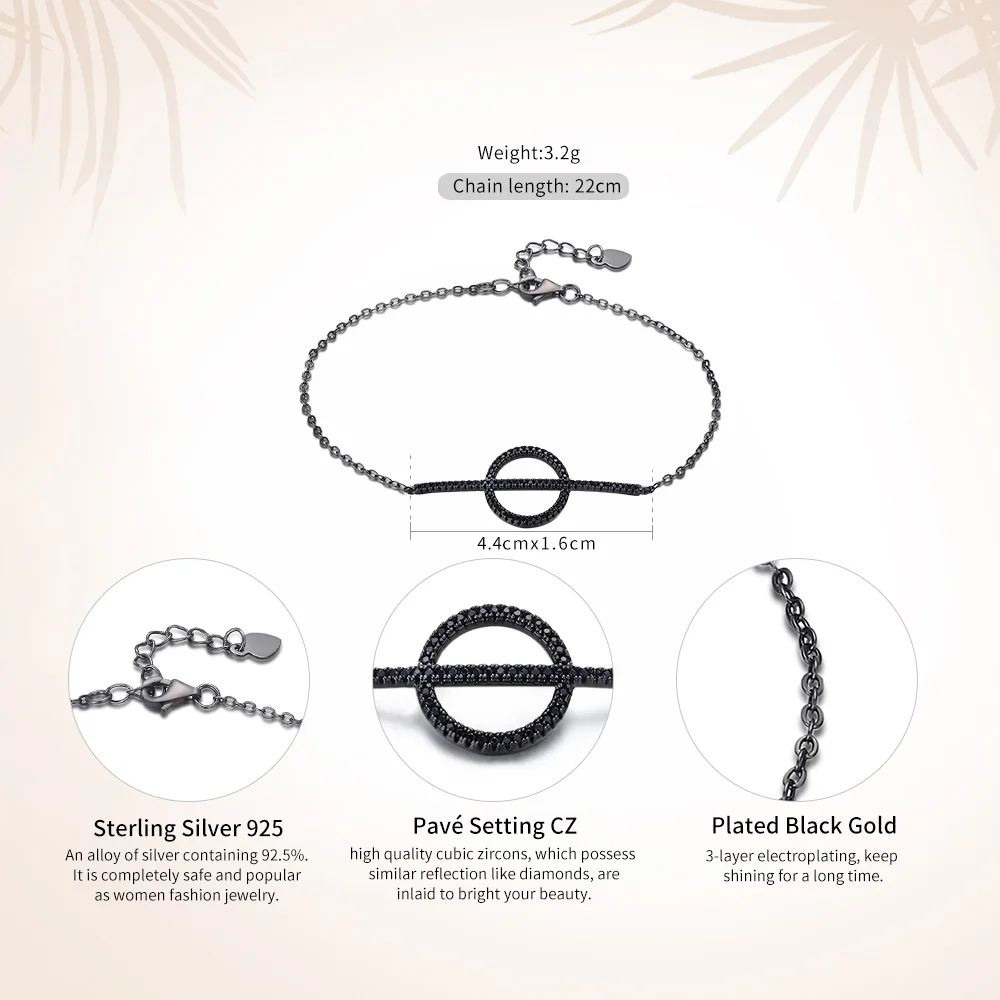 2020 925 Sterling Silver Black Zircon Classic Geometric Round Adjustable Chain Bracelet Women Party Fine Jewelry B011