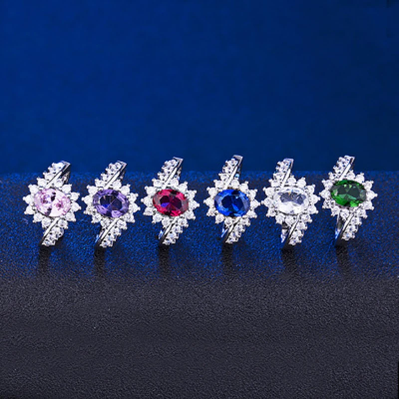 2020 Wedding Rings Blue Pink Red Green Gemstone Color Silver Clear CZ Finger Rings for Women Engagement Ring