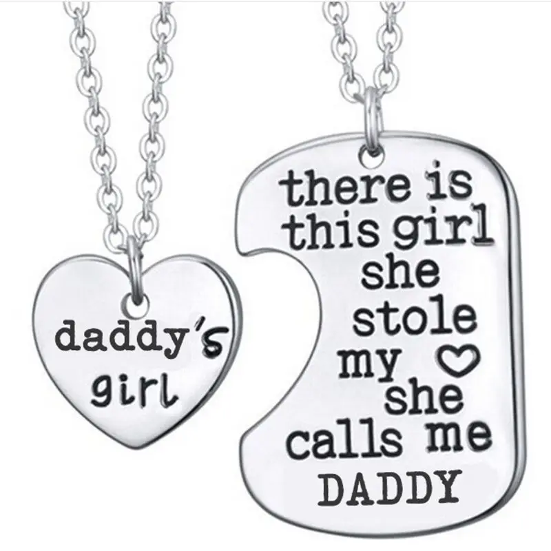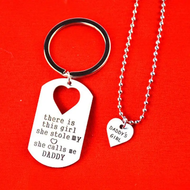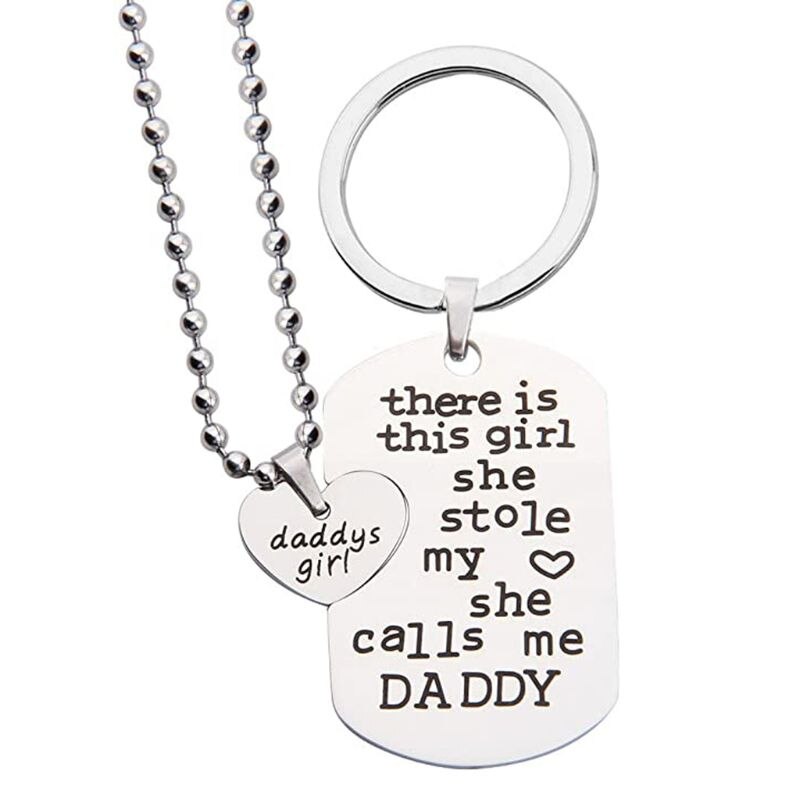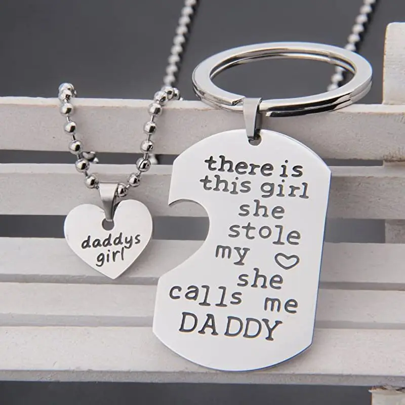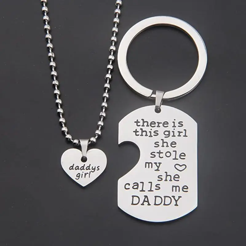 2021 2Pcs Father Daughter Gift These Girls Stole My Heart They Call Me Daddy Keychain Set Heart Puzzle Daughter Dad Necklace