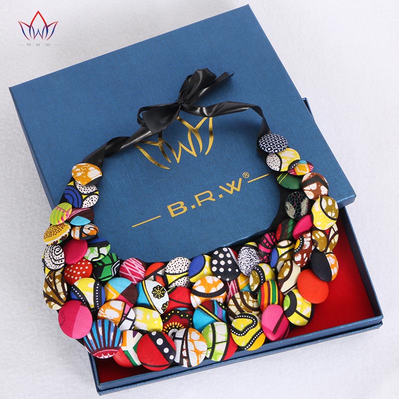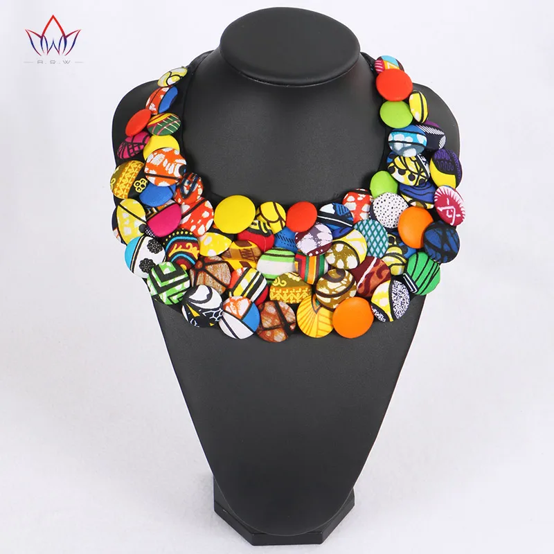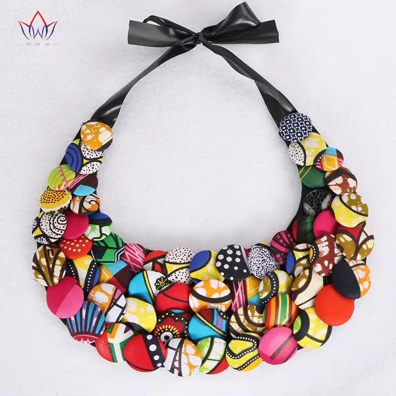 2021 Ankara Button Bib Statement Neckpiece African Tribal Necklace Statement Necklace Button Jewelry For Women WYA067