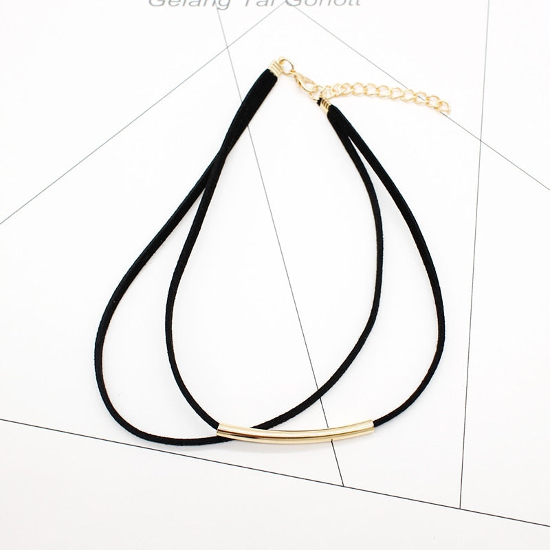 2021 Bending Tube Velvet Choker Necklace Double Layer Style Torque Black Short Leather Necklace Charm Collier Femme