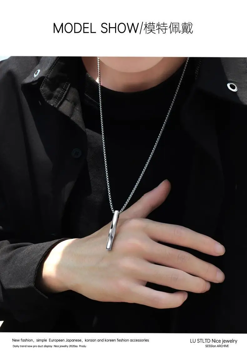 2021 Black Rectangle Pendant Necklace Men Trendy Simple Chain Men Necklace Jewelry Gift
