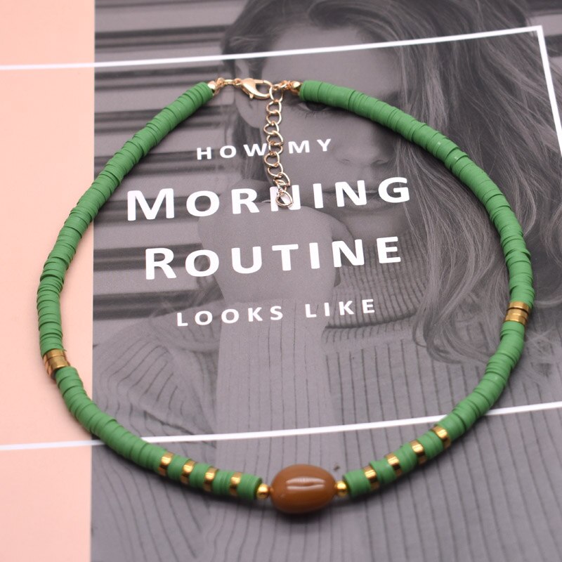 2021 Boho Natural stone Beads Necklace Polymer Clay Necklace Soft Pottery Choker Necklace Handmade Femme Jewelry Gifts