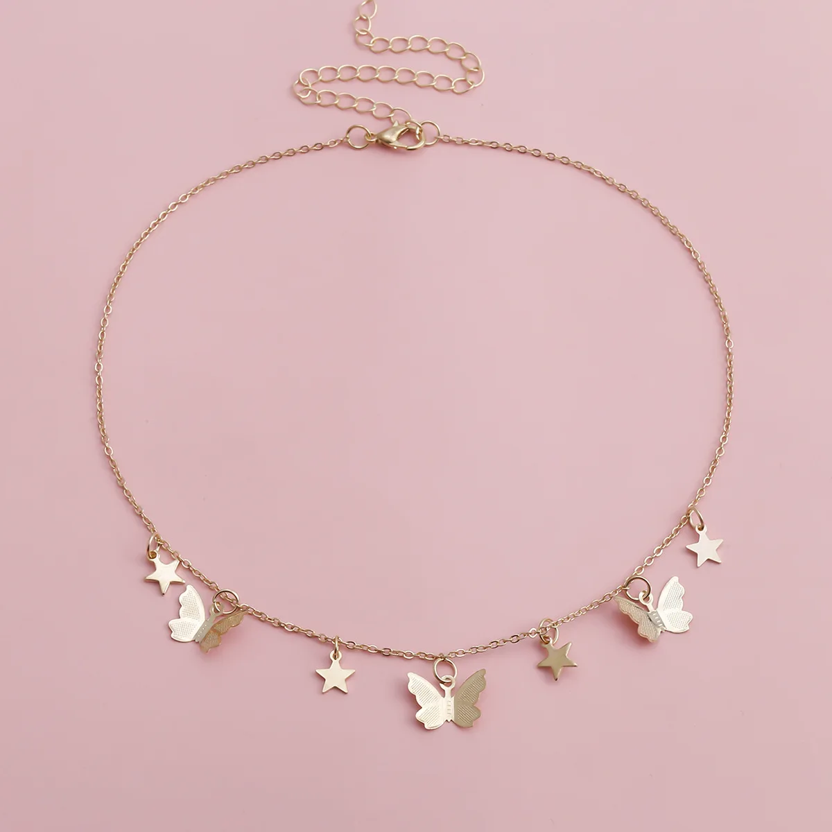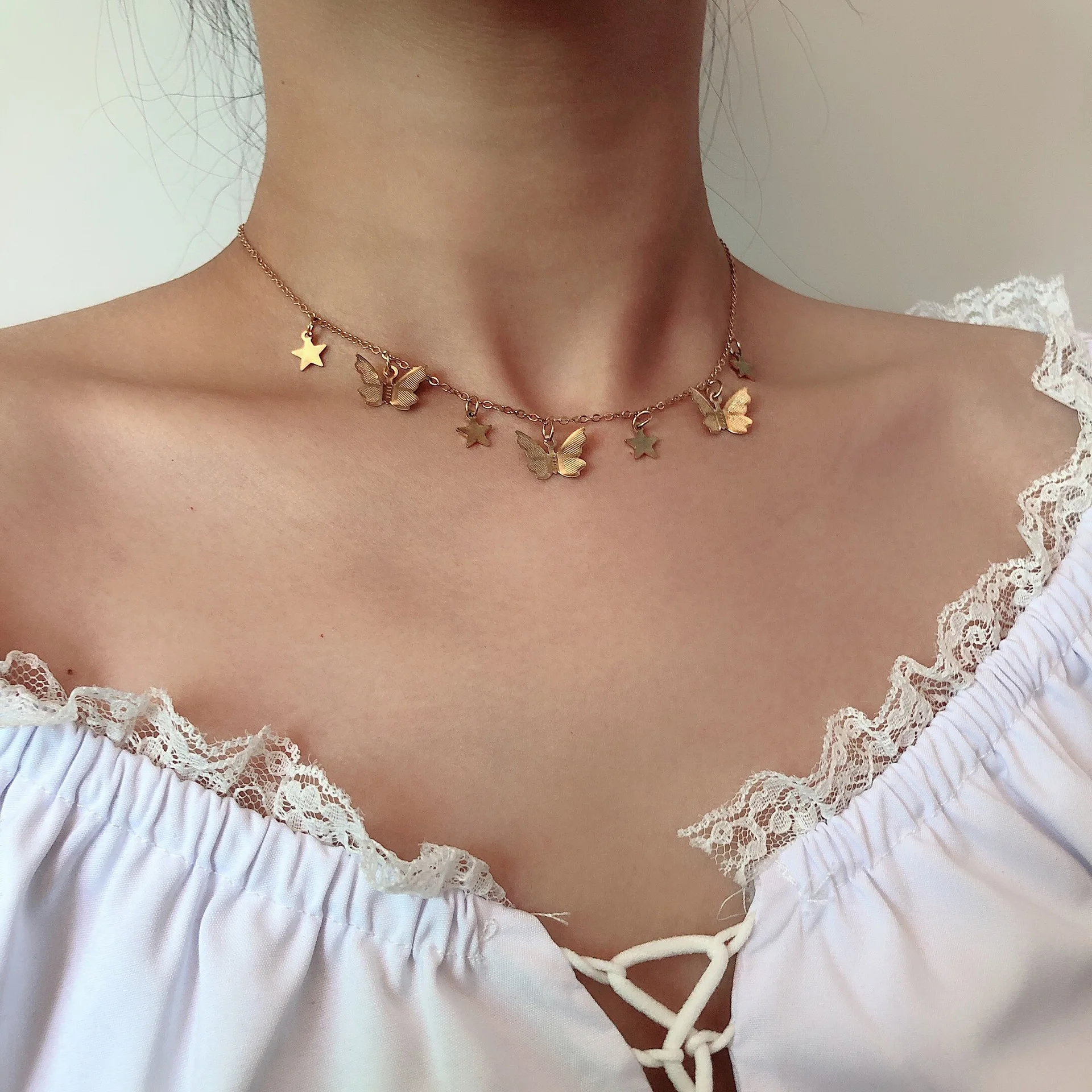2021 Boho Style Sweet Vivid Butterfly Star Pendant Necklace For Women Girl Cute Clavicle Chain Choker Shine Jewelry Party Gift