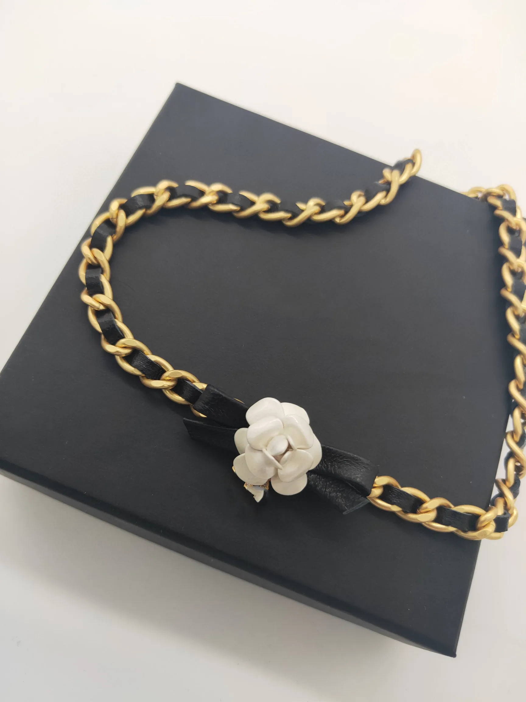 2021 Brand Jewelry Women Vintage Chain Leather Link Flower Chain Necklace Party Fine Tassel Pearls Choker