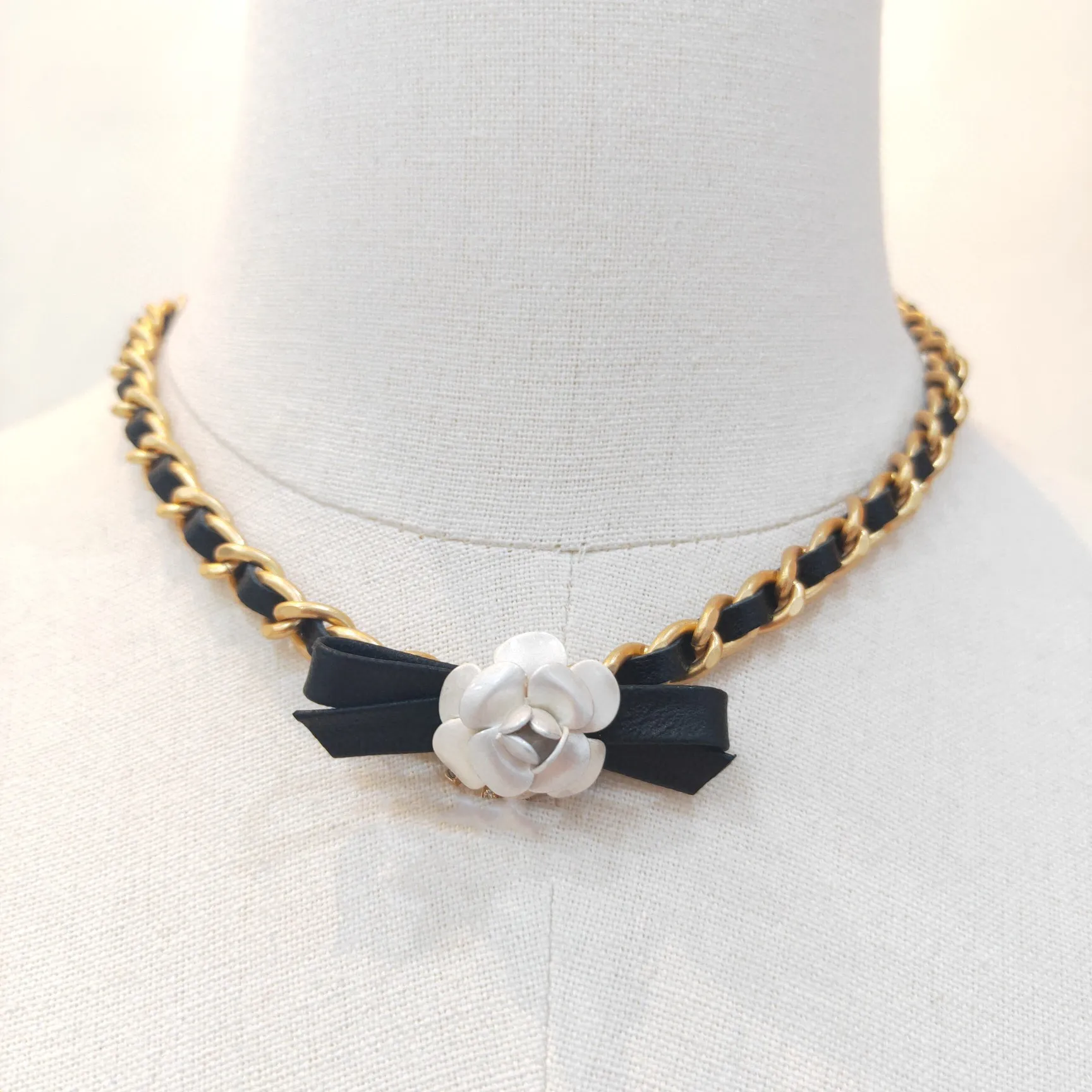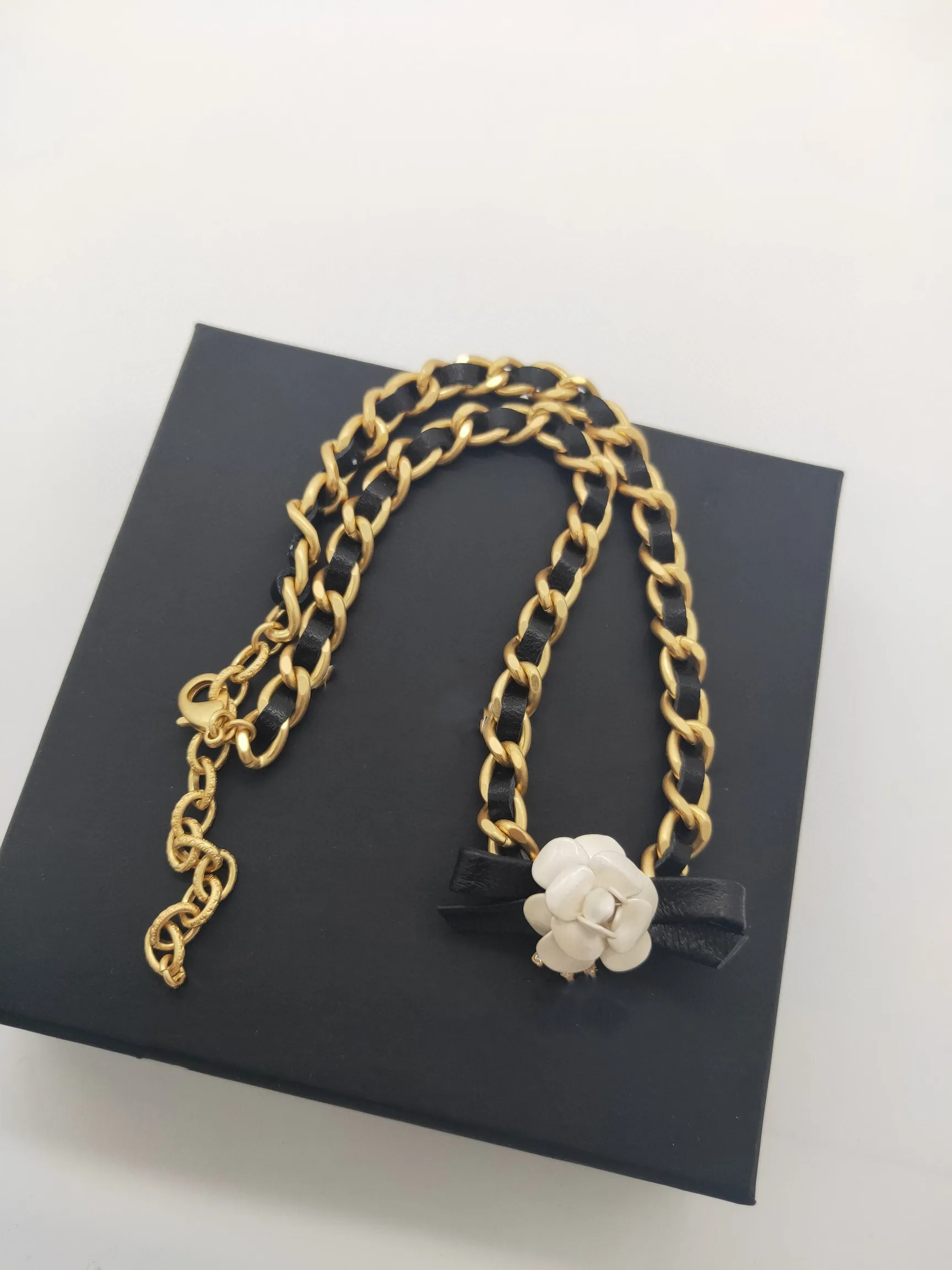 2021 Brand Jewelry Women Vintage Leather Link Flower Chain Necklace Party Fine Tassel Pearls Choker