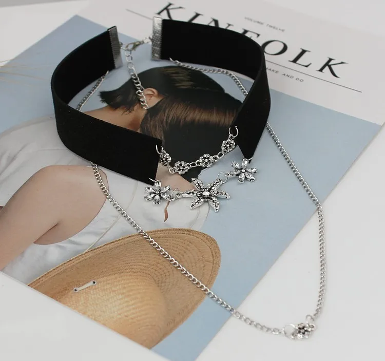 2021 Comiya Leather Crystal Flower Double Chain multilayer flowers Collar Choke necklaces pendants women Jewelry