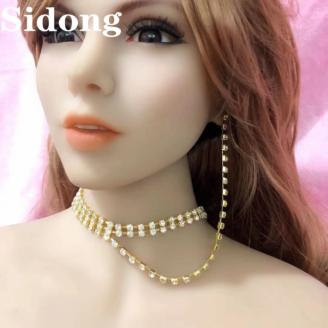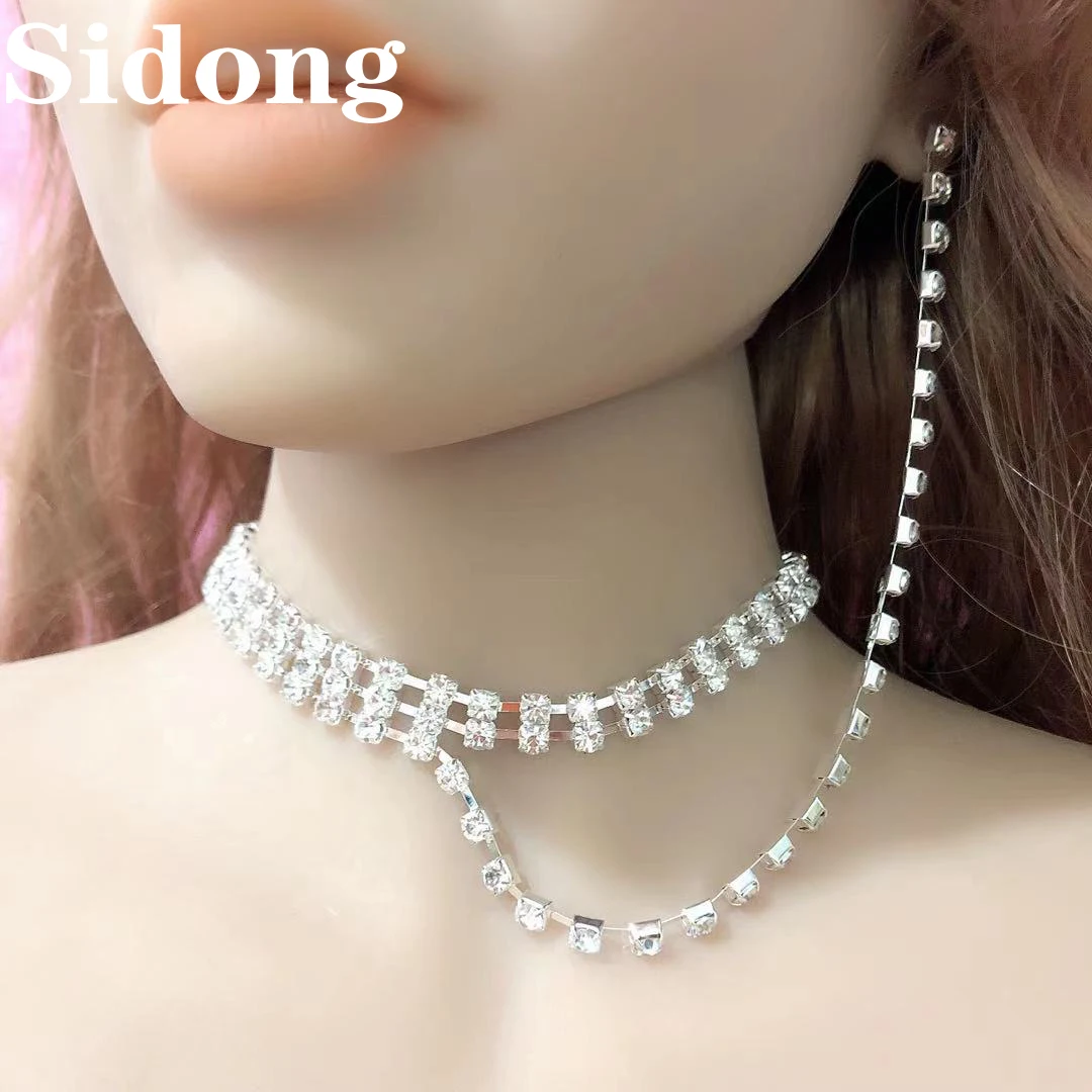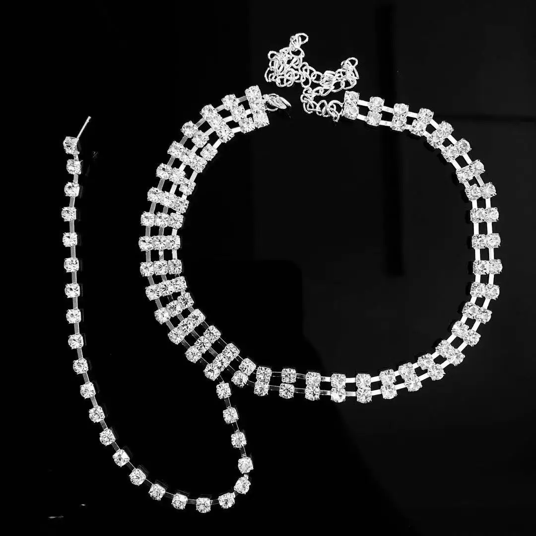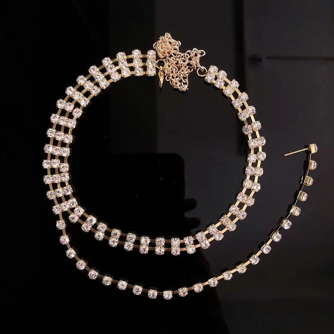 2021 creative shining Rhinestone Necklace Earrings multi row Necklace women accessories jewelry gift