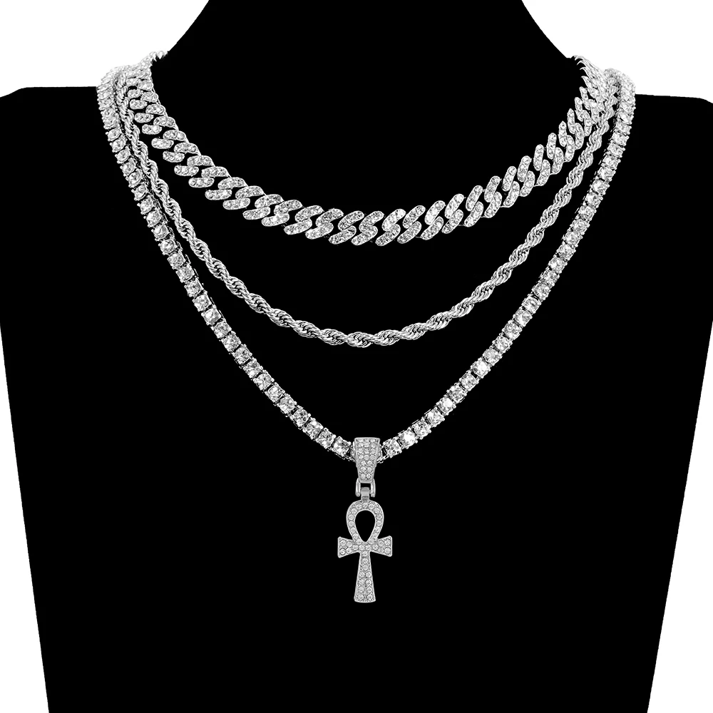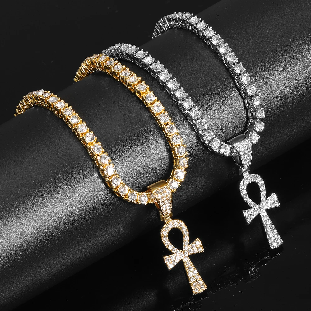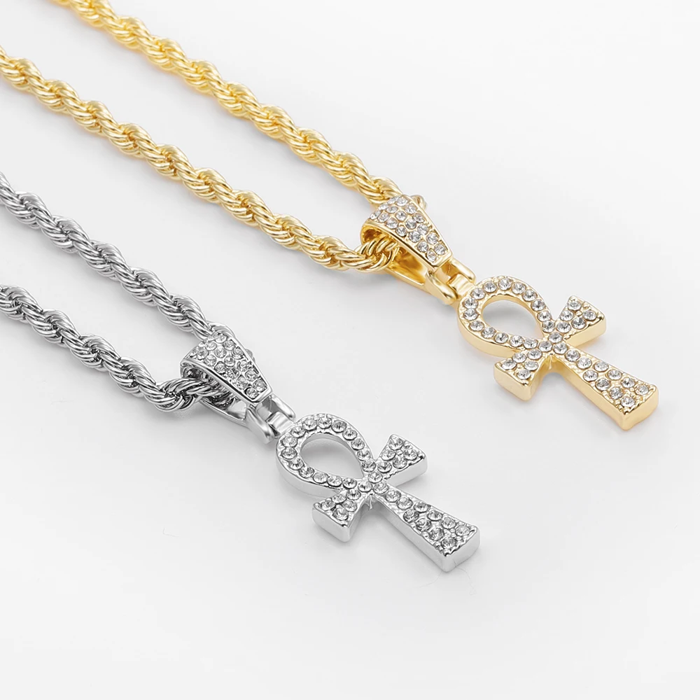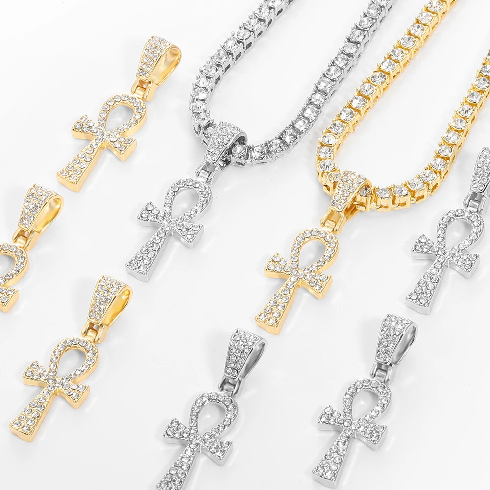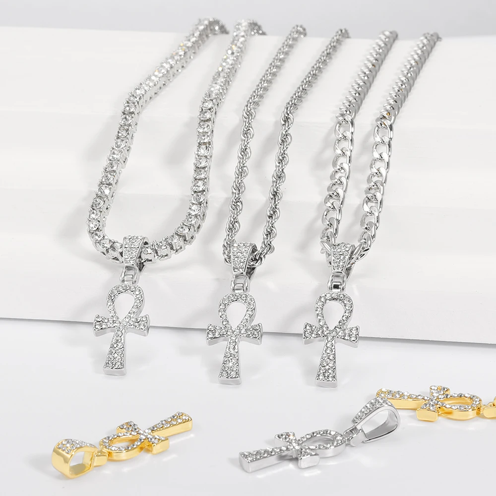 2021 Cross Alloy Pendant For Men Key of Life Egyptian Charm Necklace Hip Hop Jewelry Bling Iced Out Chain Crystal Ankh Gift