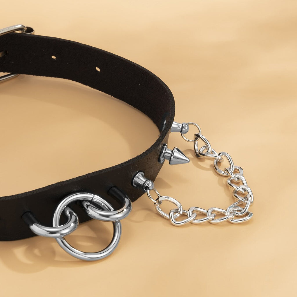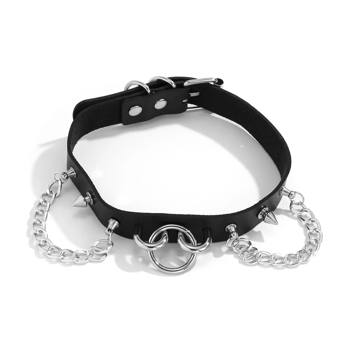 2021 Designed Hip Hop Rock Dominatrix Style Tassel Metal Chain Rivet Geometric Pu Black Chokers