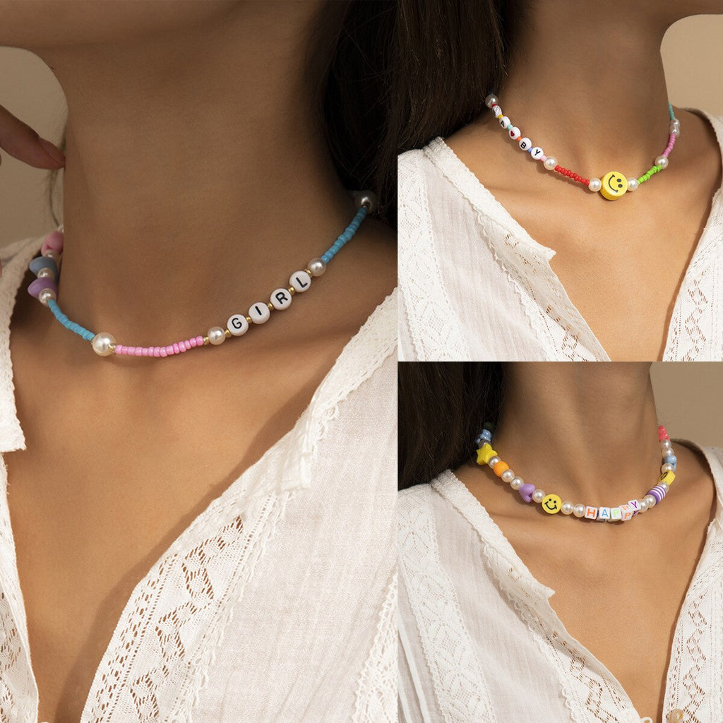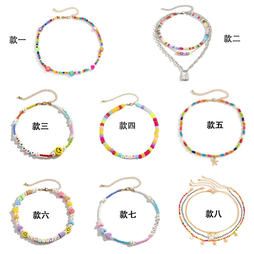 2021 European and American Trend Handmade Beaded Smiley Necklace Simple Rice Beads Star Mix and Match Jewelry Necklaces