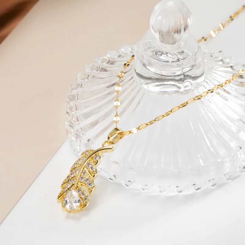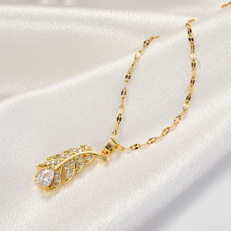 2021 Full Crystal Gold Color Leaf Pendant Women Clavicle Necklaces Female No Fade Stainless Steel Chokers Necklace