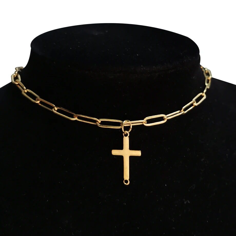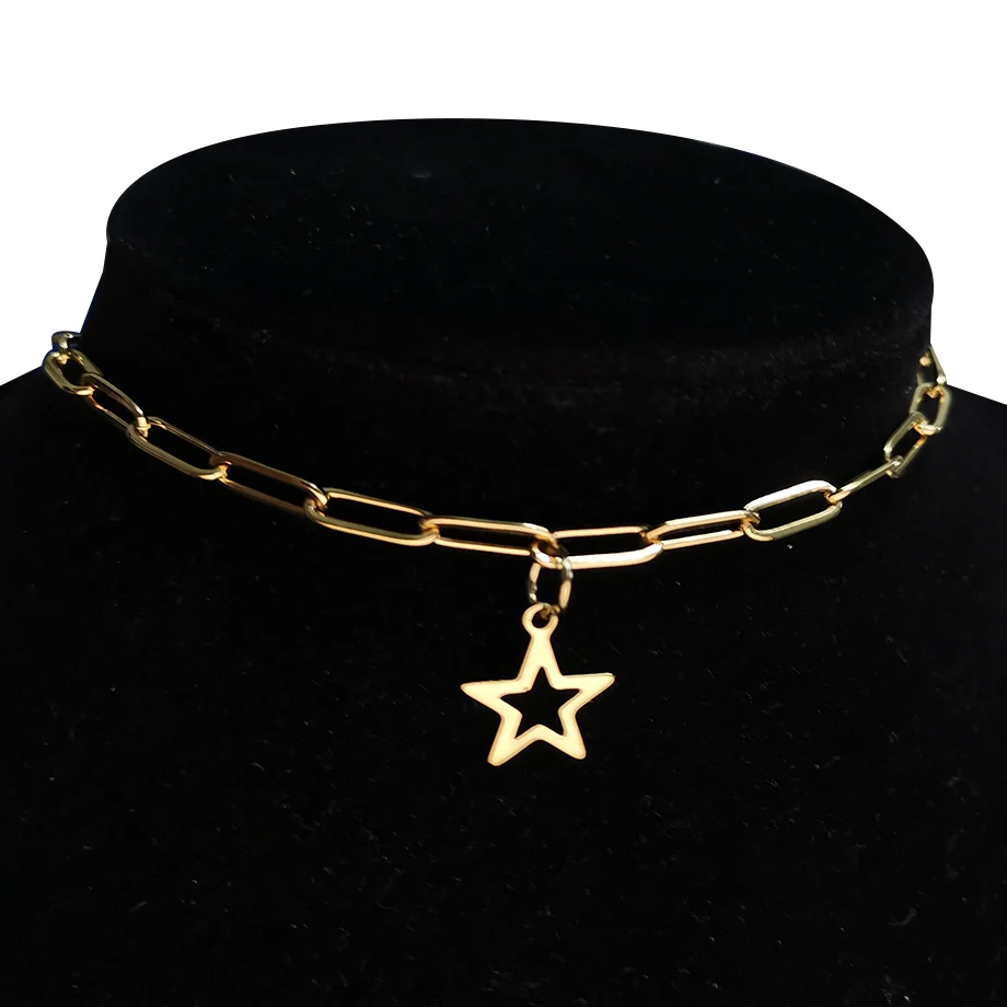 2021 Gold Color Stainless Steel Choker Chain Necklace Punk Clavicle Short Neck Chain Pendant Necklace For Women Jewelry