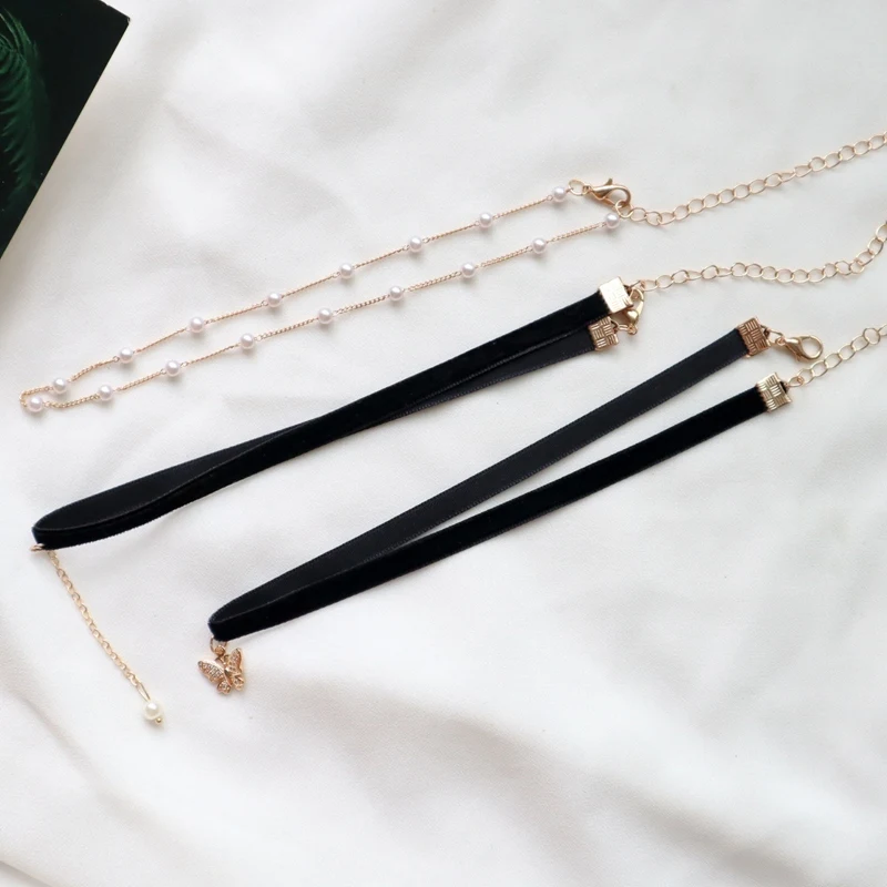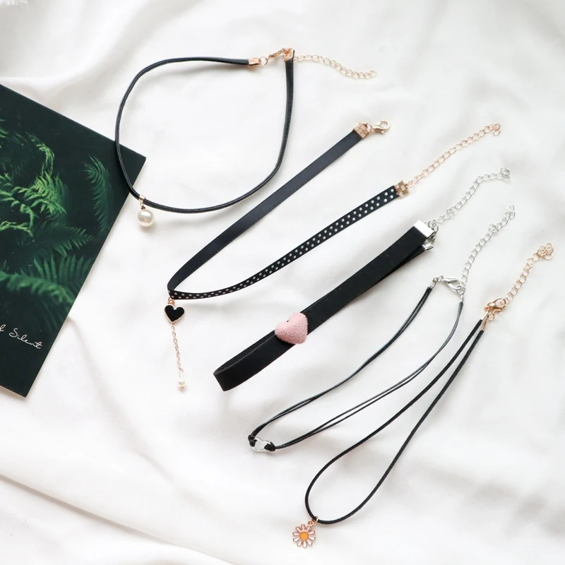 2021 Gothic Punk Style Velvet Tattoo Lace Choker Long Black Collar Choker Necklace Pendant Women Jewelry Gift