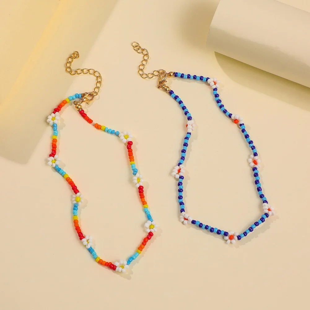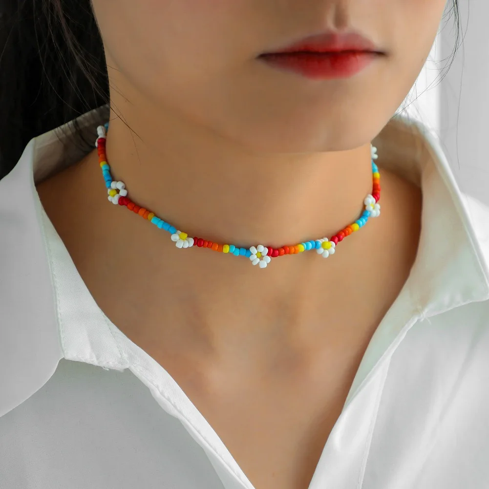 2021 Handmade Trendy Cute Colorful Glass Bead Floral Chocker Necklace Women's Jewelry Gift