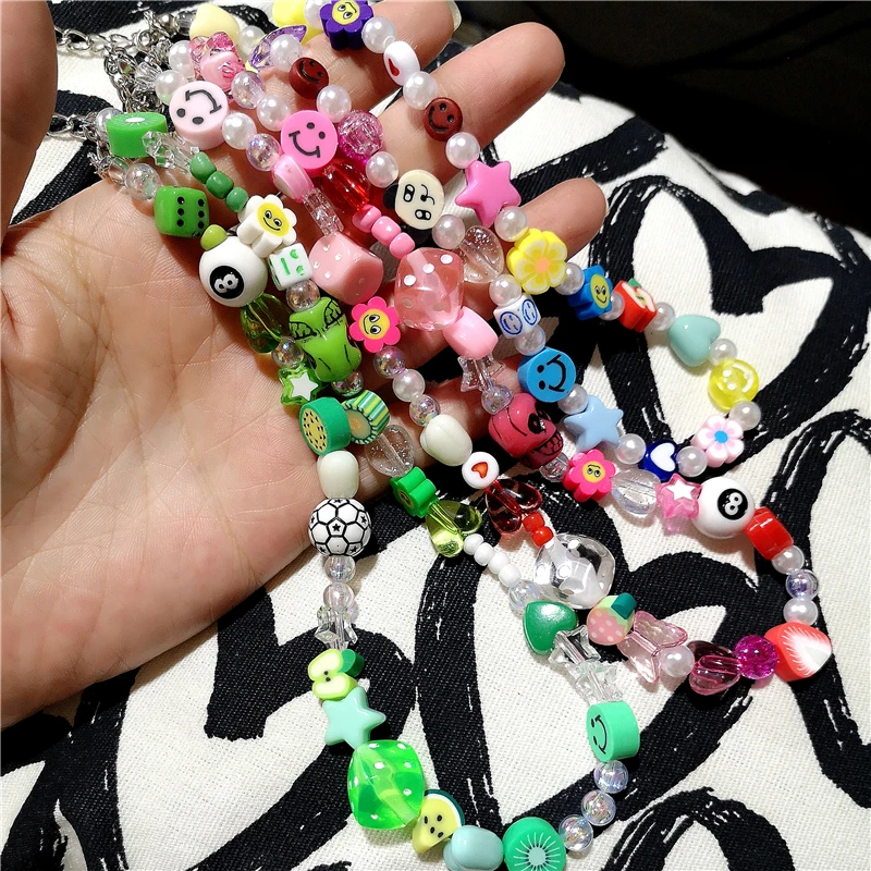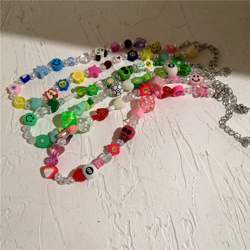 2021 Harajuku Fruit Smiley Beaded Necklace For Women Men Egirl Multicolor Pearl Choker INS Trendy Clay Fruit Bohemia Accessories