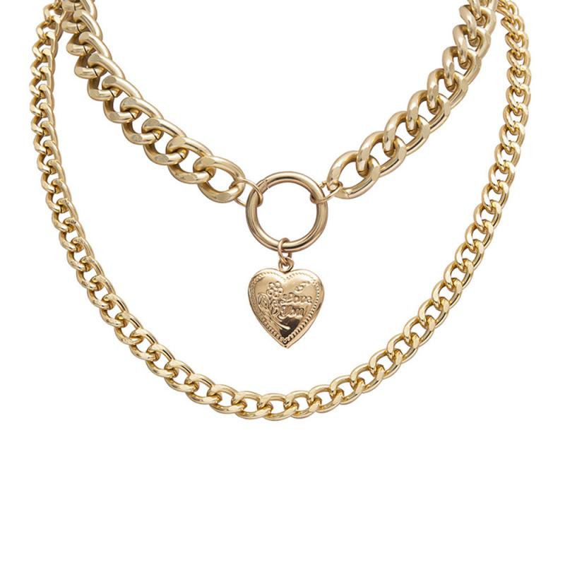 2021 Heart-Shaped Creative Openable Pendant Necklace Item Women Exaggerated Double-Layer Simple Chain Short Necklace Sale