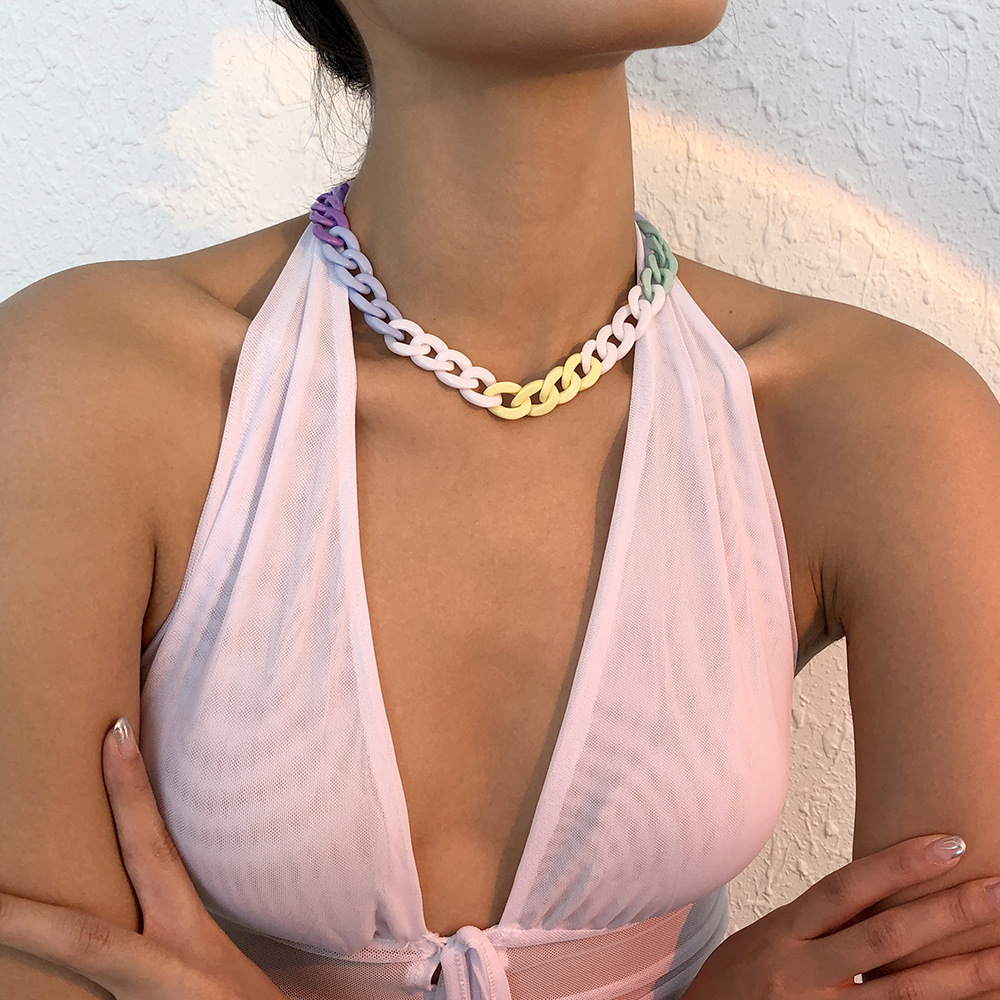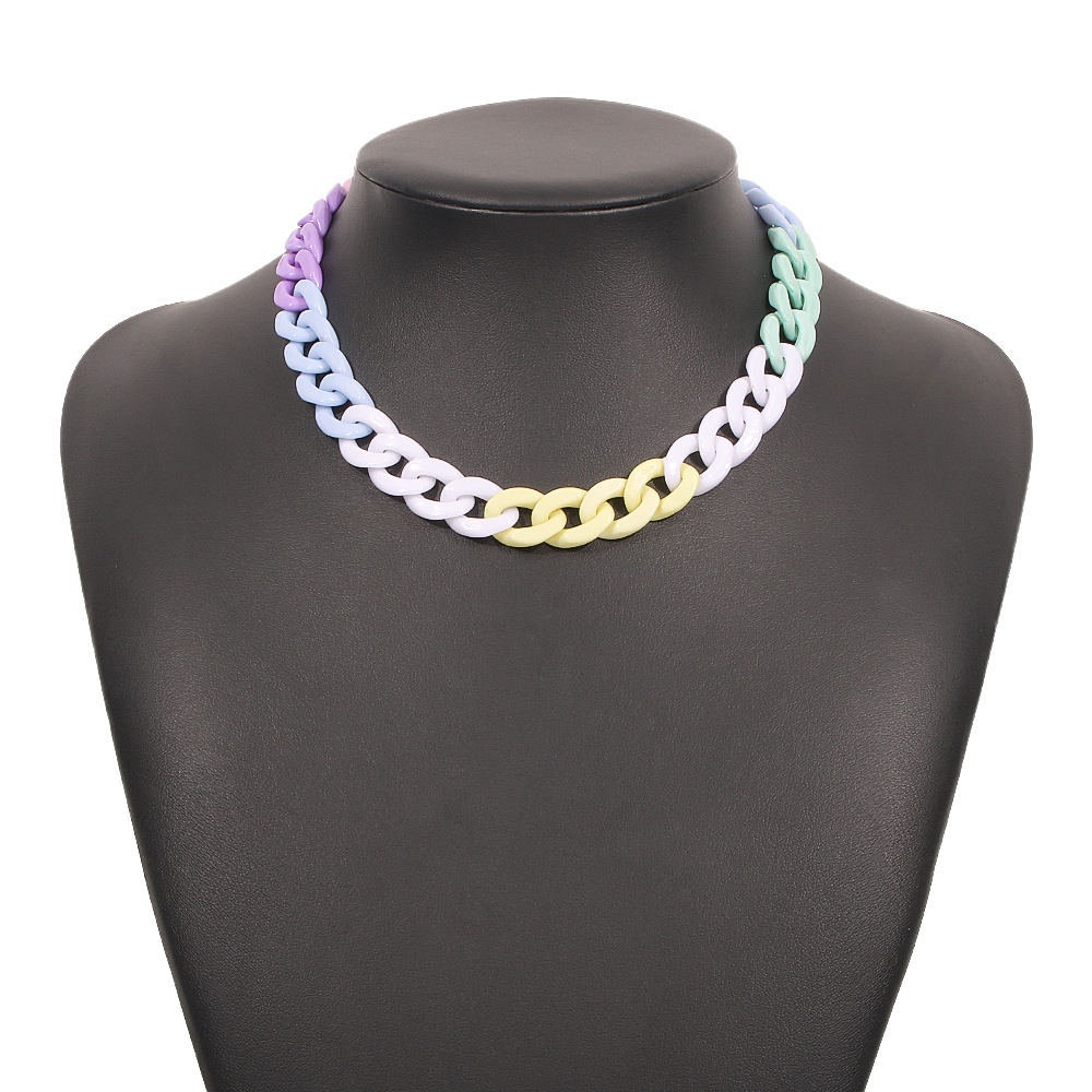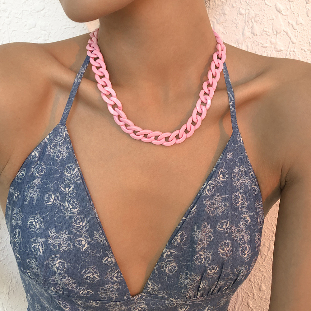 2021 Hiphop Exaggerated Multicolor Resin Thick Chain Choker Necklace Pink Necklaces For Women Punk Jewelry Gifts Drop Shipping