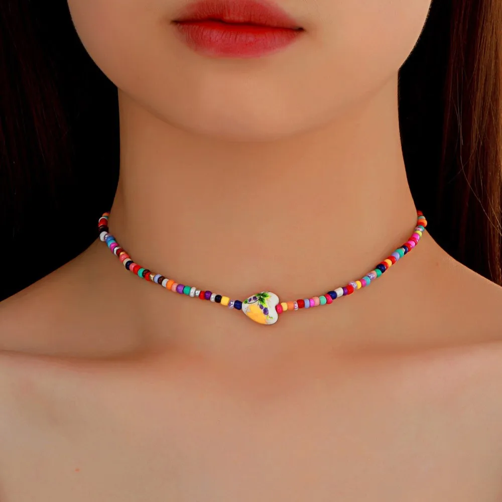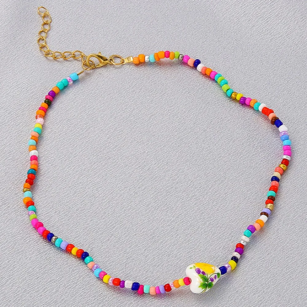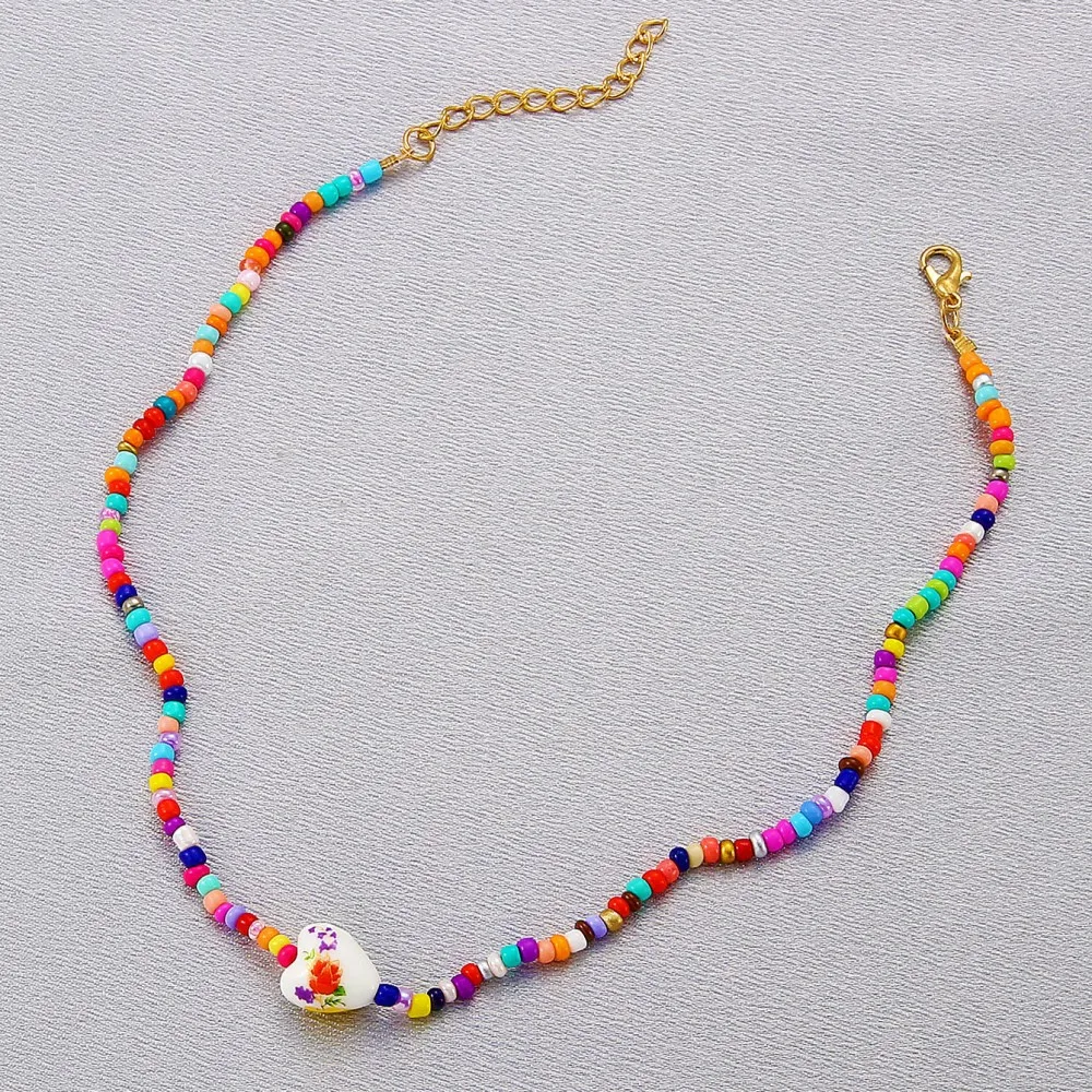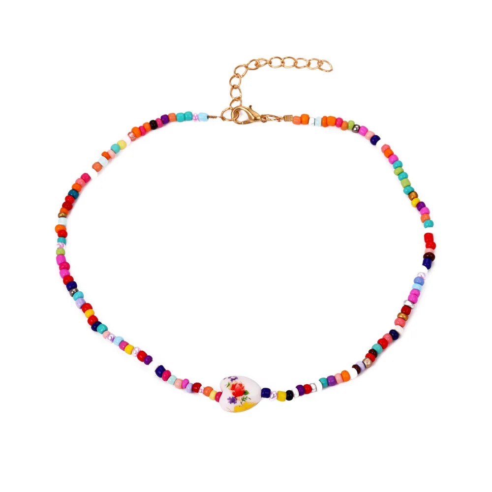 2021 Korea Colorful Beaded Charm Short Choker Necklace for Women Girls Bohemian Clavicle Necklace Vacation Jewelry