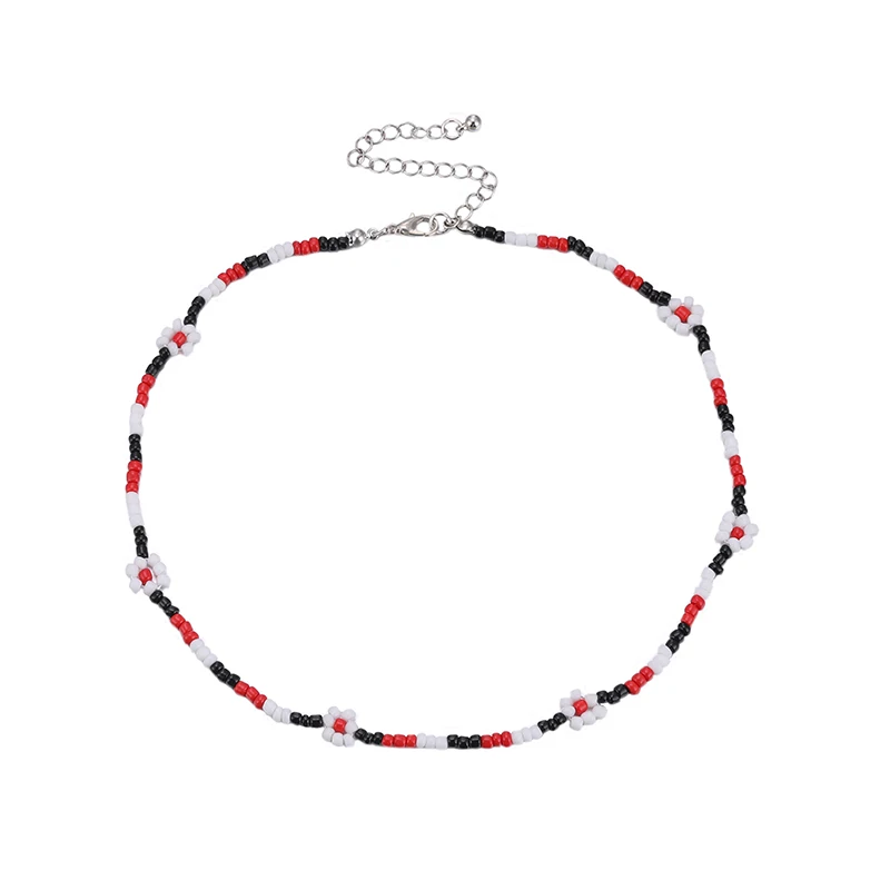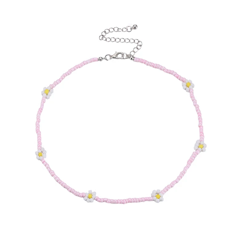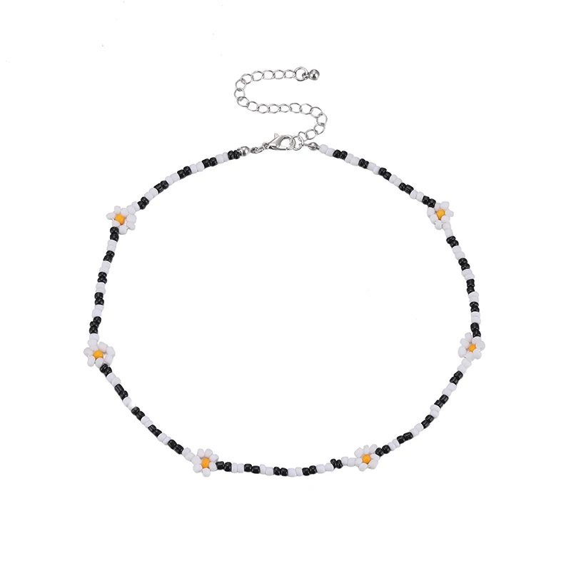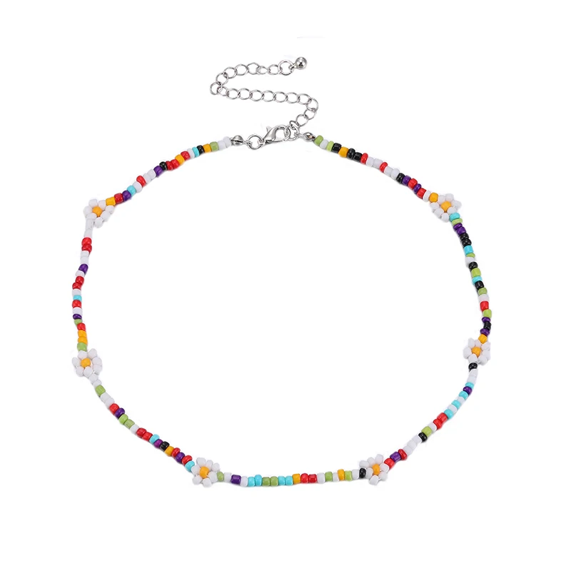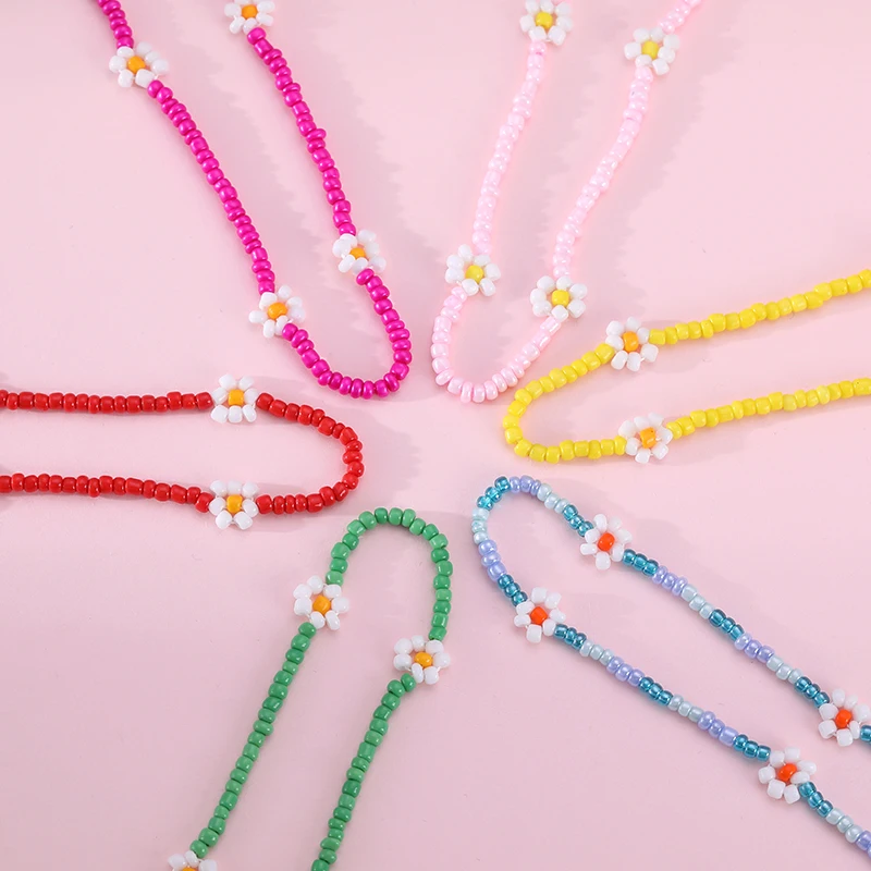 2021 Korea Lovely Daisy Flowers Colorful Beaded Boho Statement Short Choker Necklace for Women Vacation Jewelry