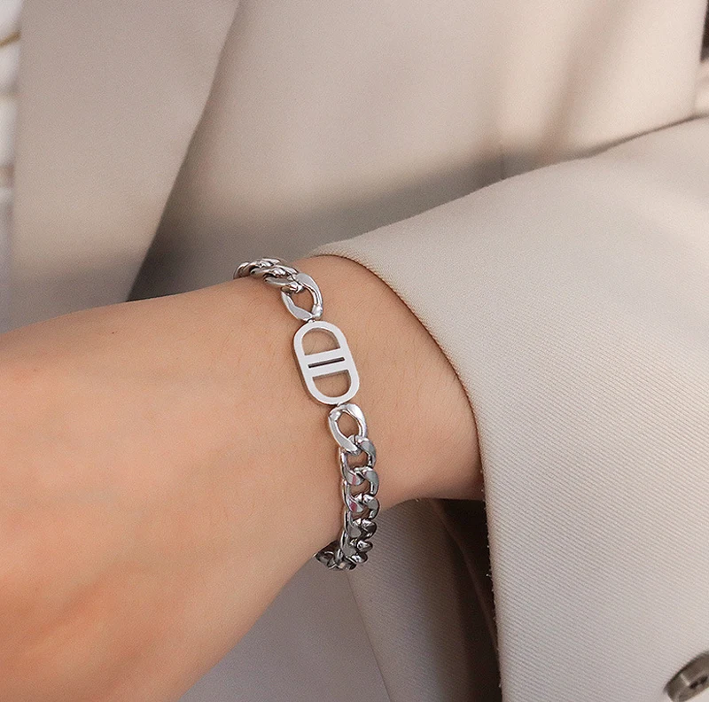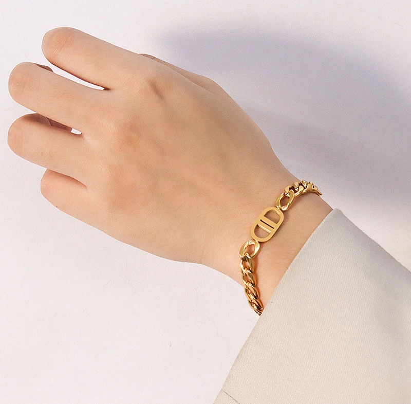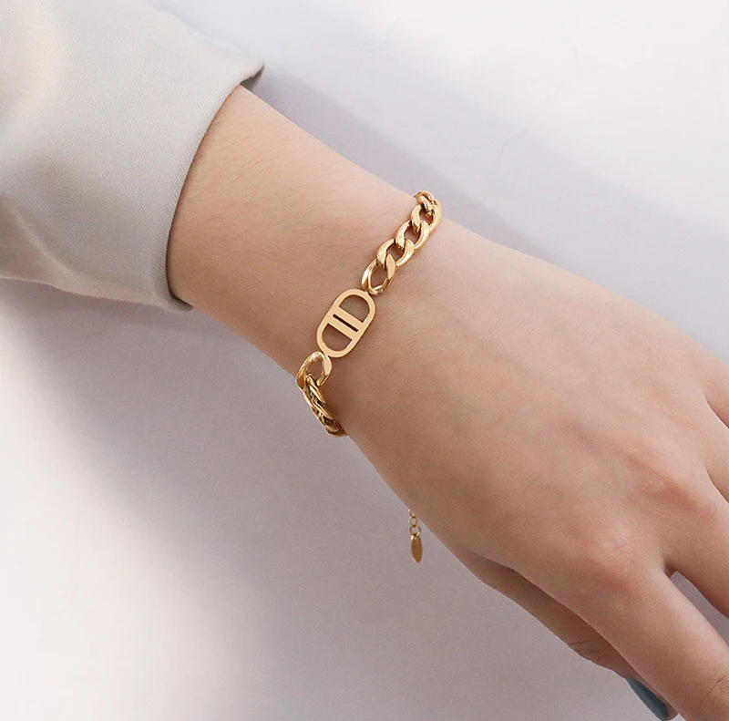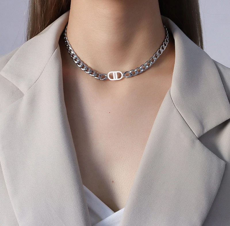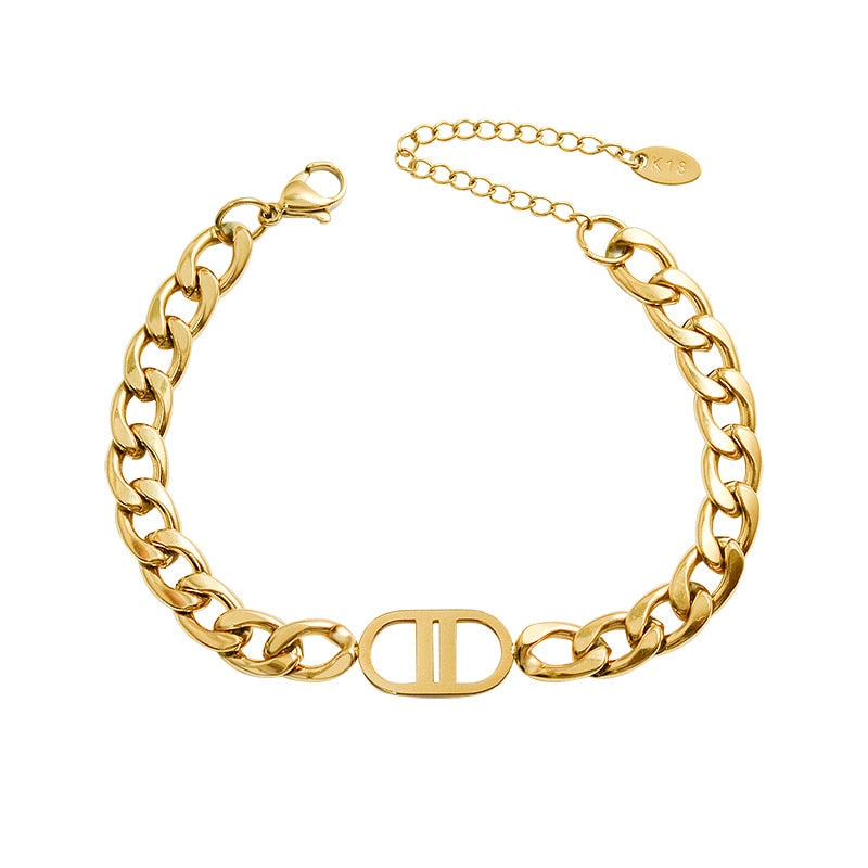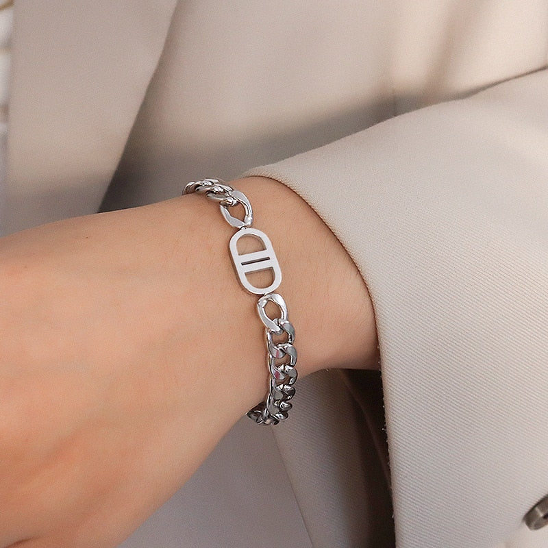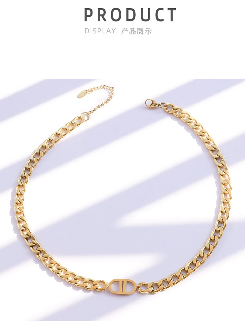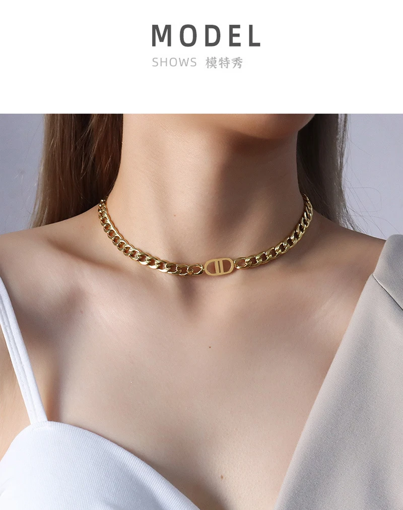 2021 Korean Hip-Hop Style Women's Titanium Steel Gold-Plated CD Letters Men's Clavicle Necklace Bracelet Set