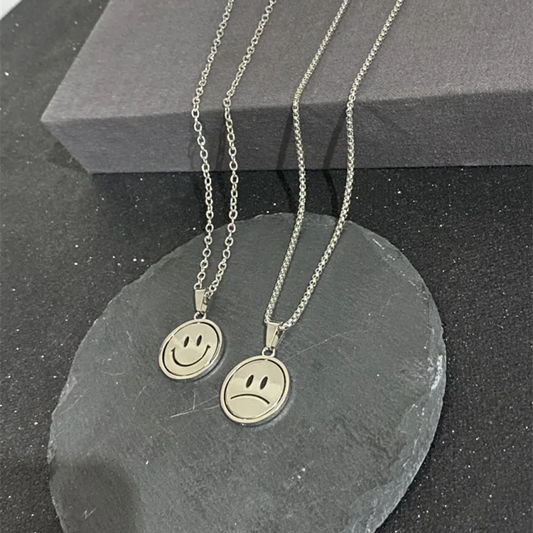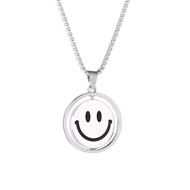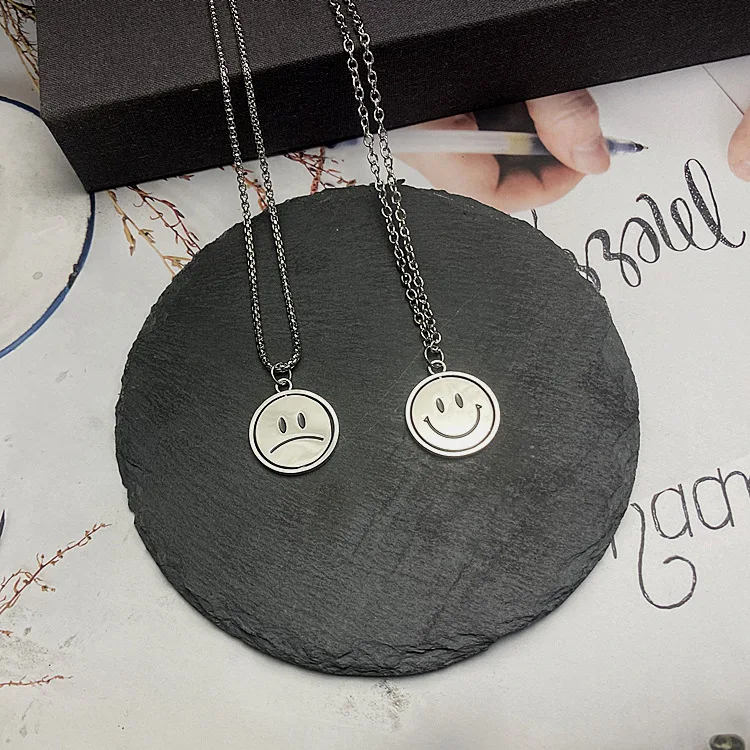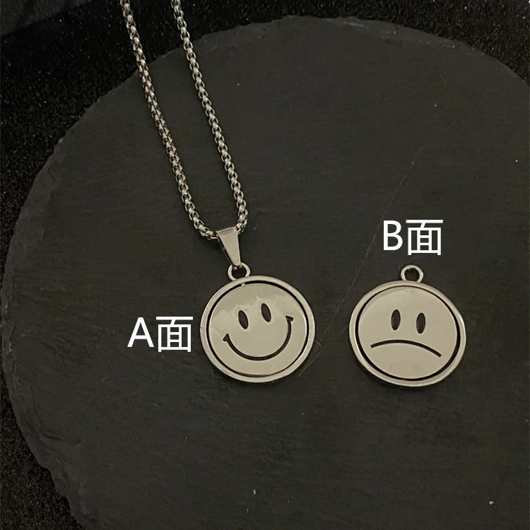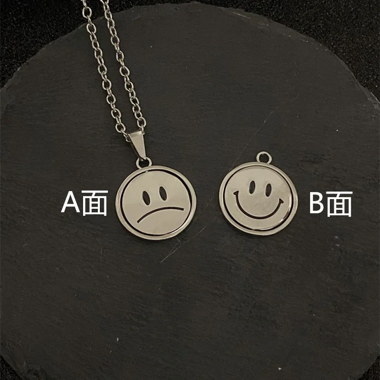 2021 Korean Rotating Smiley Necklace Pendant Men&Women Expression Double Sided Necklace Couple Gift Jewelry