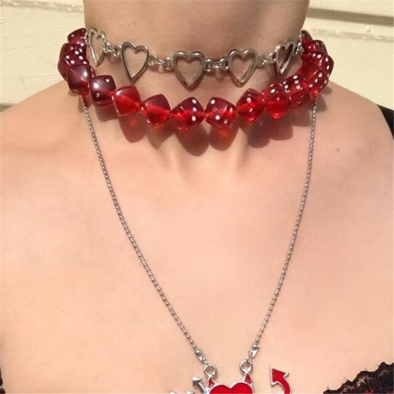 2021 Kpop Harajuku Retro Simple Lucky Dice Beaded Necklace For Men Women Egirl Hip Hop Party Street Jewelry Neck Decoration